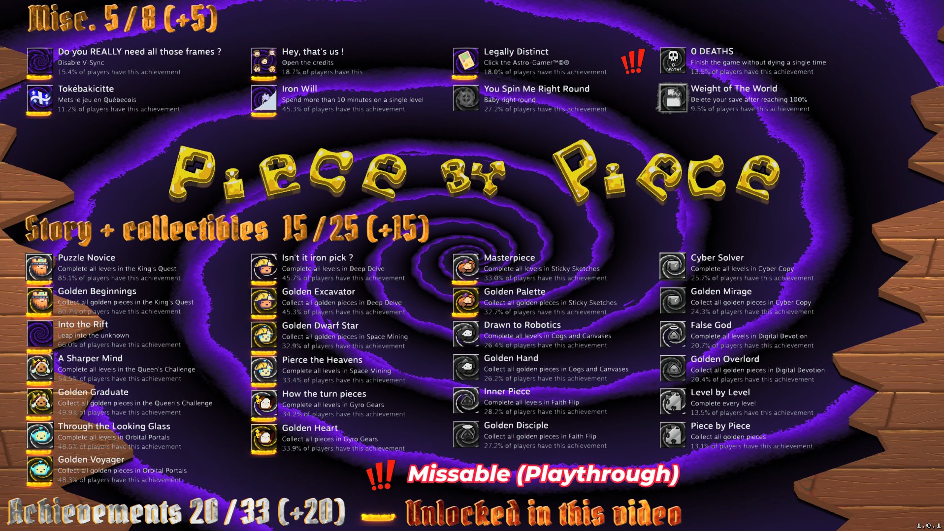 Piece by Piece is a literal puzzle platformer where each level is fragmented into puzzle pieces. Clear each puzzle by connecting and unconnecting each piece to make your way through each of our 100 handcrafted levels. Discover new themes and mechanics along the way!