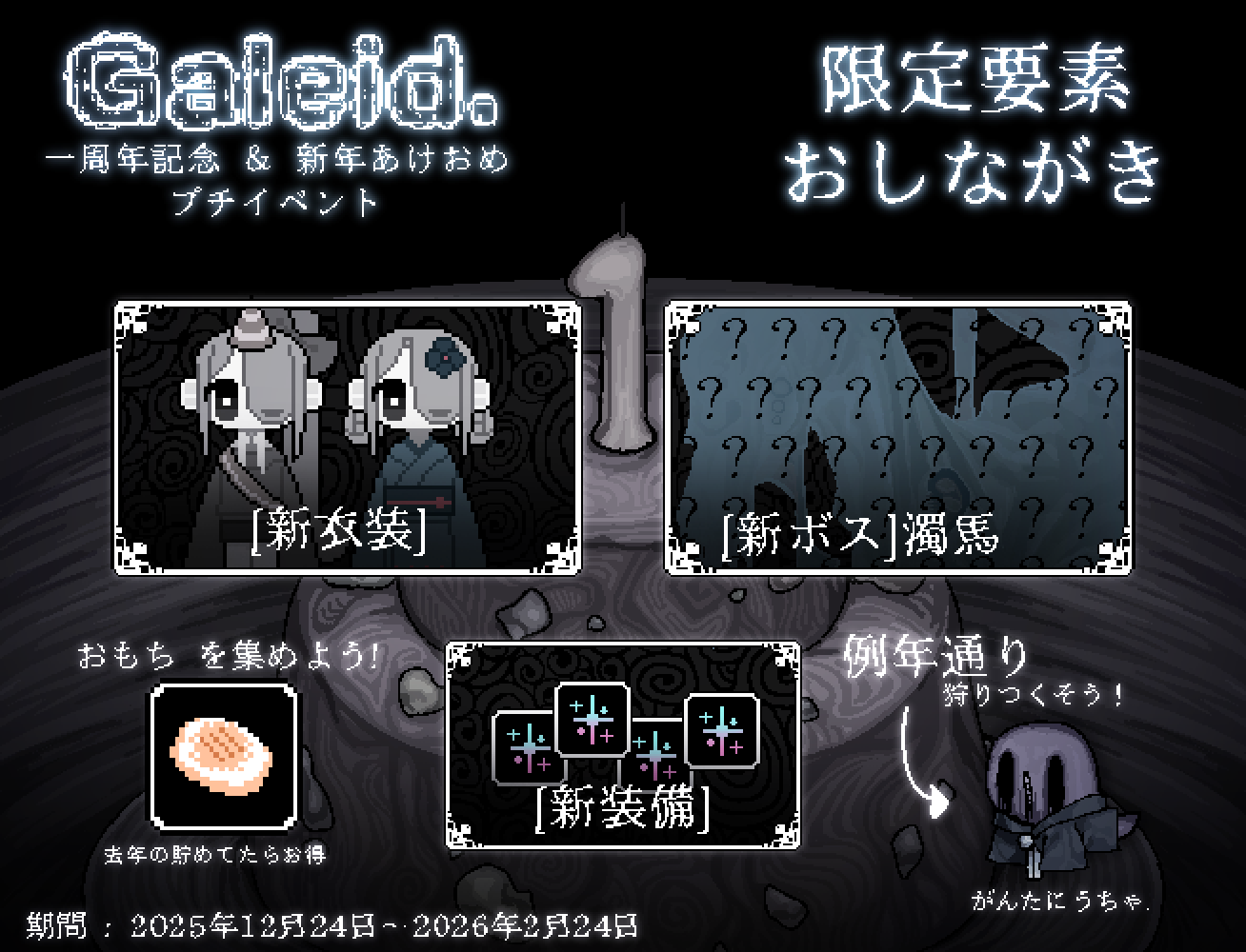 :アイテム「おもち」 を追加。 イベントで使用する通貨アイテムです。去年開催の『新年あけおめ2025』で手に入ったお餅と同様な為、貯蓄おもちしていた方は少し得するでしょう。 終了後も保持されます。