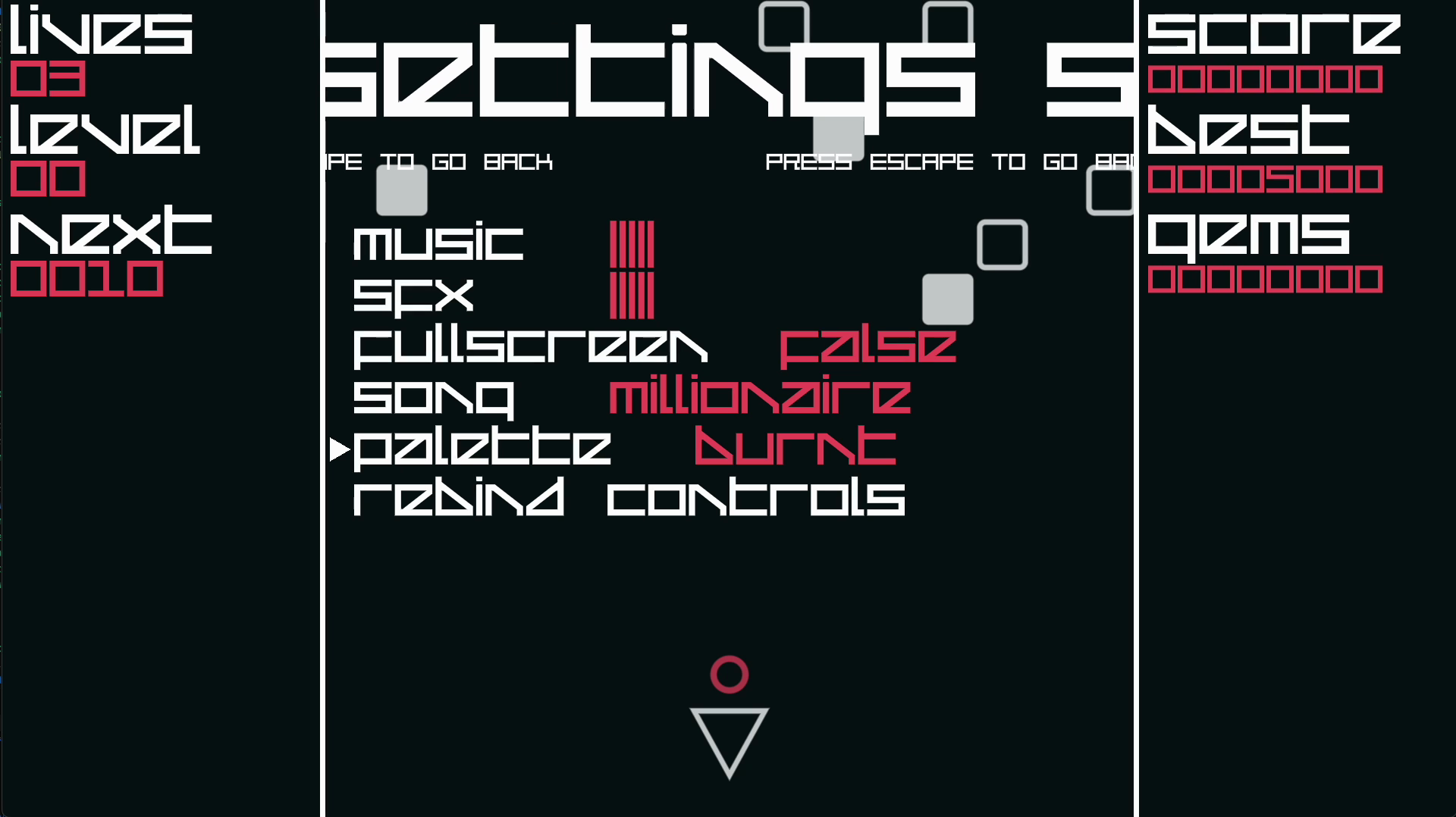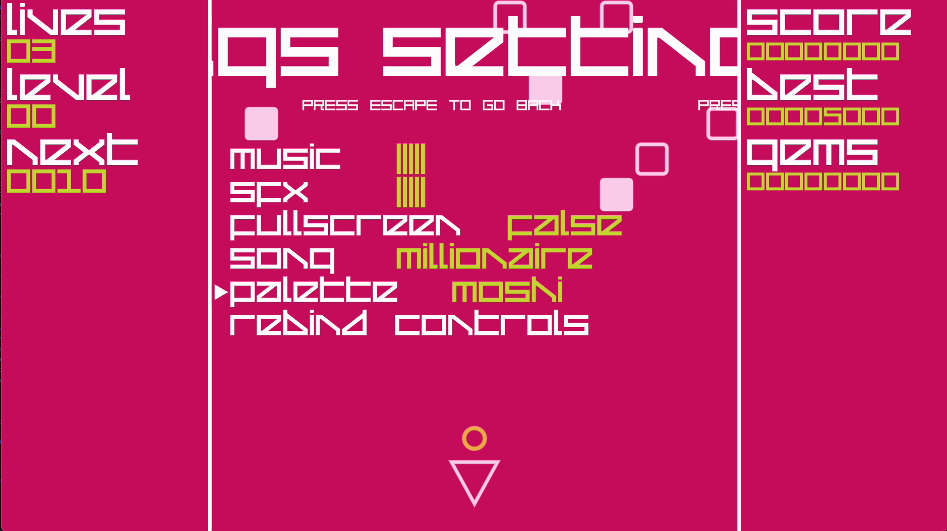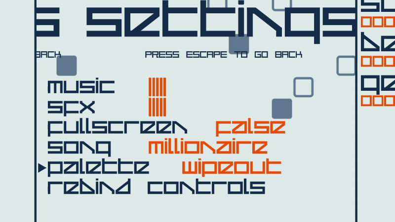 This is only the beginning: I intend to add more unlockable palettes and songs, and also some more options, like a "random" mode for both.
