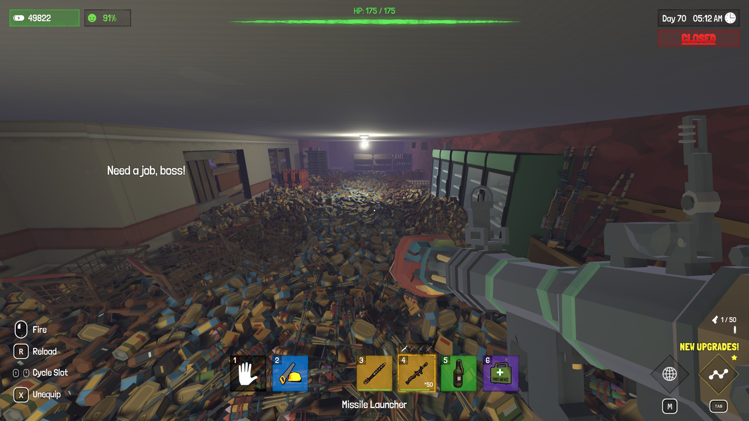 Run a shop in the zombie apocalypse! Trade batteries, craft stock, manage your staff, and fend off undead hordes. Will you be a hero, or profit at any cost? Your choices shape your store - and your fate.