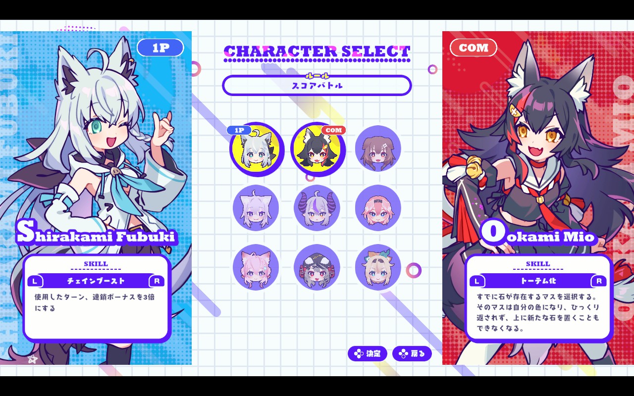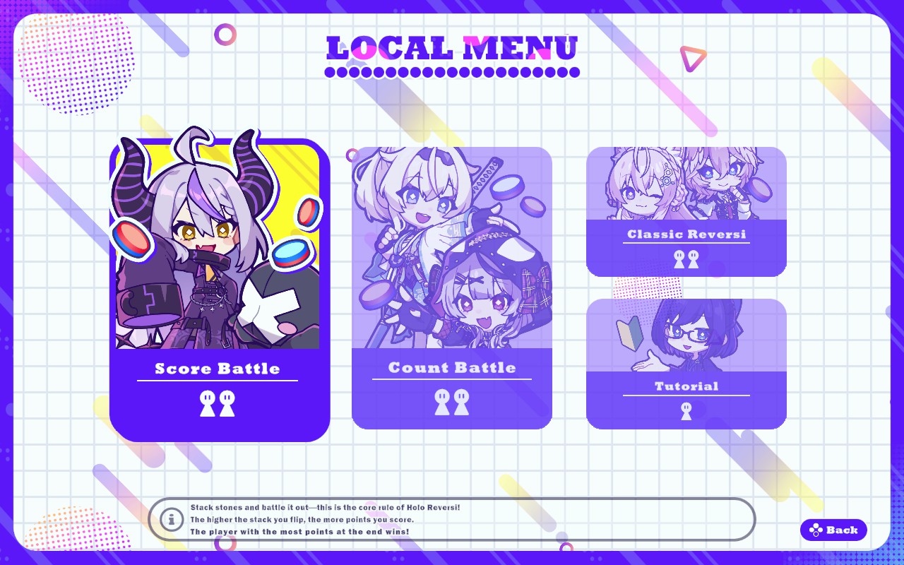 Experience a New Twist on Reversi with Hololive Members! Use original stacking mechanics and Hololive member skills to enjoy strategic battles! Take on intense CPU matches or online battles for the ultimate brain challenge!