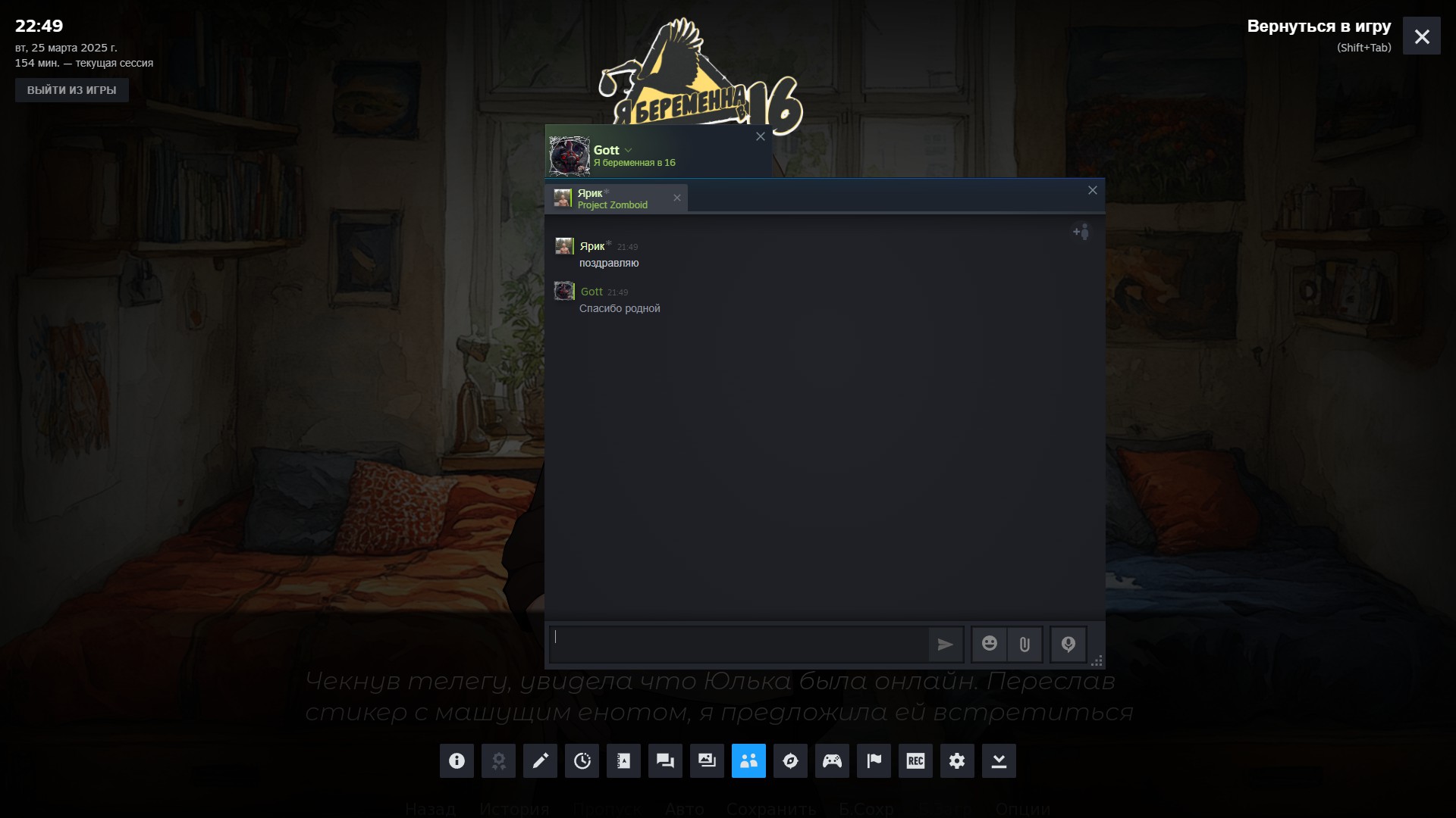 "I'm Pregnant at 16" is a visual novel about tough choices, growing up, and navigating relationships during an unexpected pregnancy. Personal stories and the consequences of decisions are balanced with awkward moments, chat messages, inner thoughts, and memes.