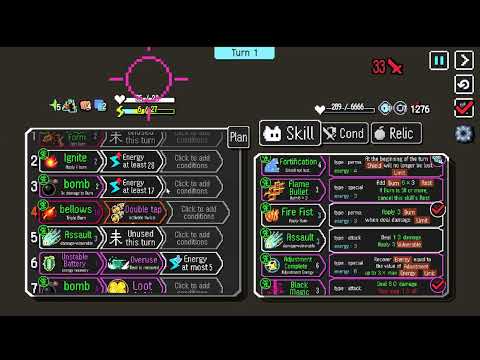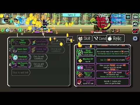 A roguelike where you automate combat. Combine skills and conditions to find your own optimal solution! No complicated controls at all!! Sit back with a coffee and watch the beautiful battles you've crafted unfold! Utilize a variety of skills, conditions, and relics to craft the ultimate build!