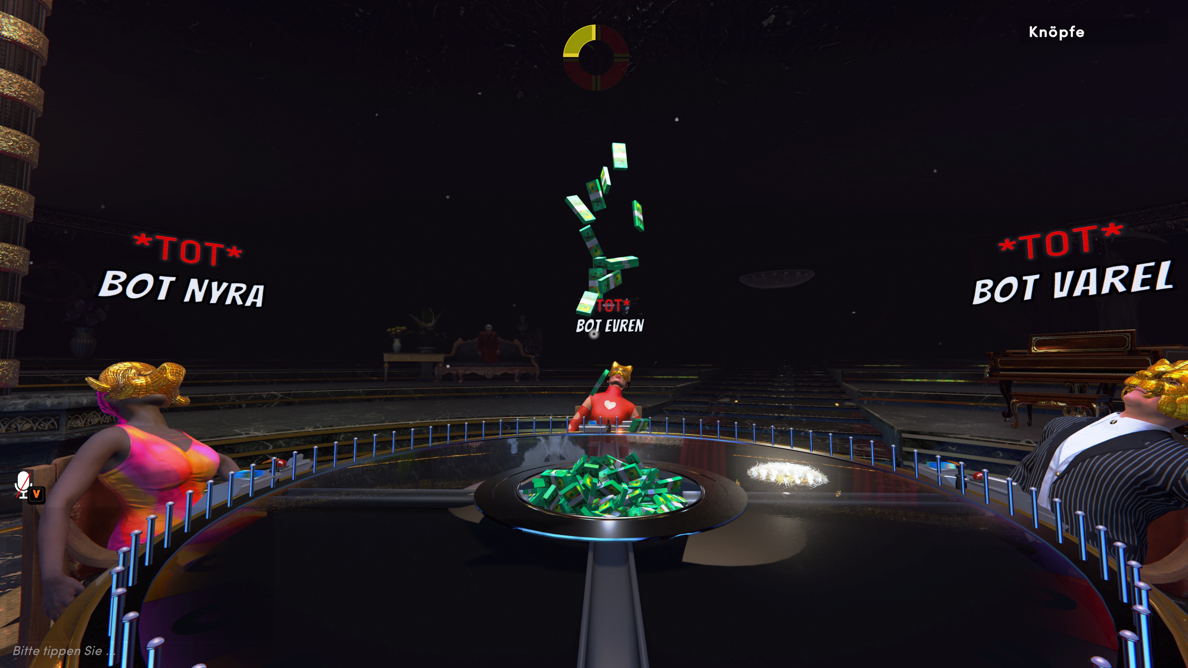 Join the multiplayer online experience by spinning the fortune wheel in this deadly arena. Take your seat at a table with up to 6 players and earn money with every spin. Remember, deception can double your cash or be your downfall! Are you ready for an unforgettable night?