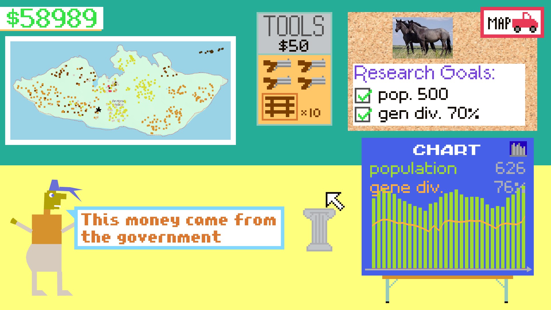 Collect Horses. Breed Horses. Race Horses. Genetically Modify Horses. Create a Horse paradise or just get rich!