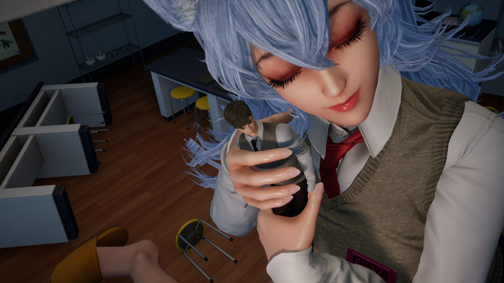 Escape from the locked school by solving puzzles while running away from Freya.