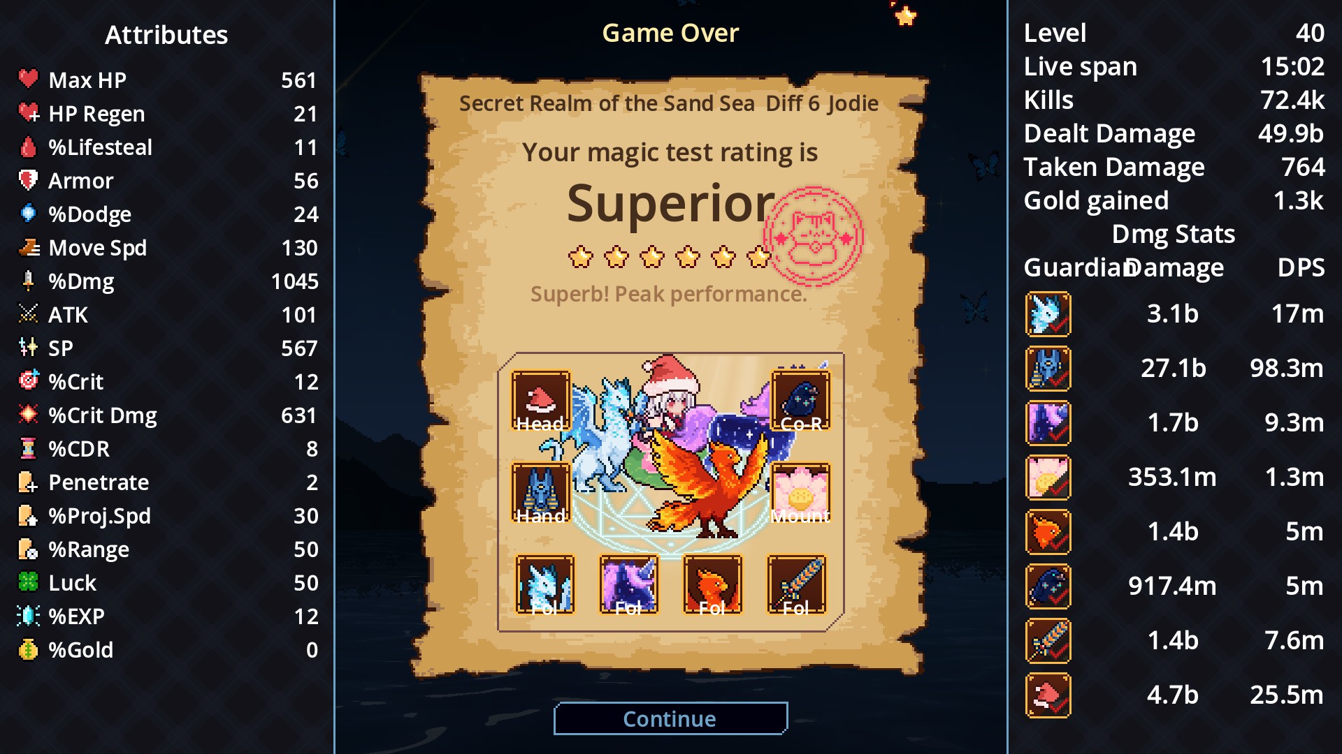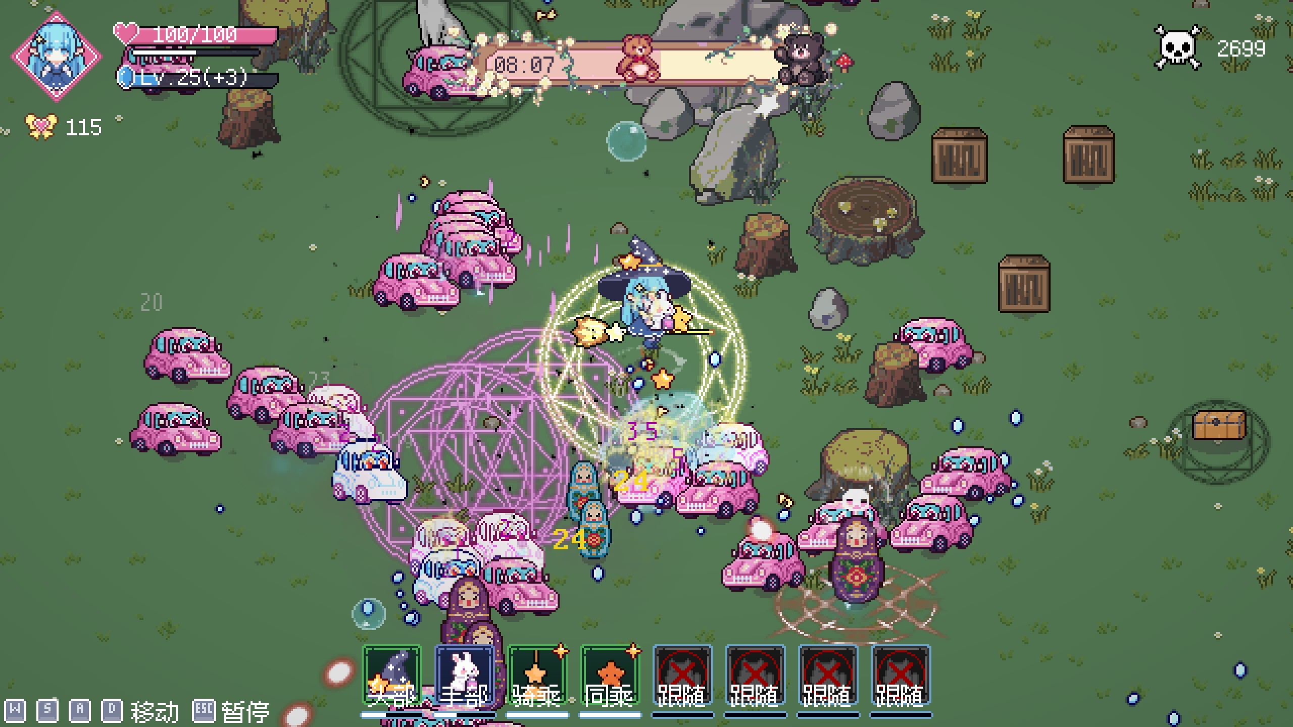 "Little Witch Survivors" is a magic pigeon barrage shooting game. You will play as a little witch, summoning and commanding eight unique magic guardians to fight side by side! Each guardian has dual skills, and you can switch strategies freely in the equipment slots - weave your own magic miracle!