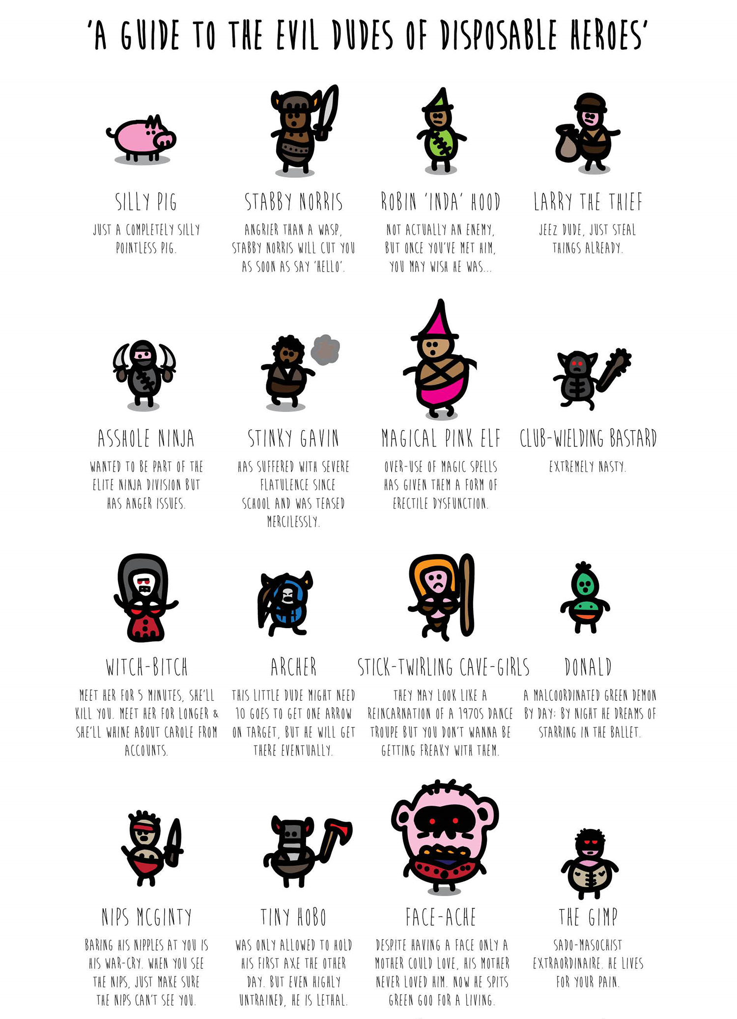 Meet the disposable heroes... A rag-tag band of nobodies who - quite by accident- represent the kingdom's last hope. With the royal army slain it is they who must venture across the land on a quest to bring back the head of the king's son so that the light might return.