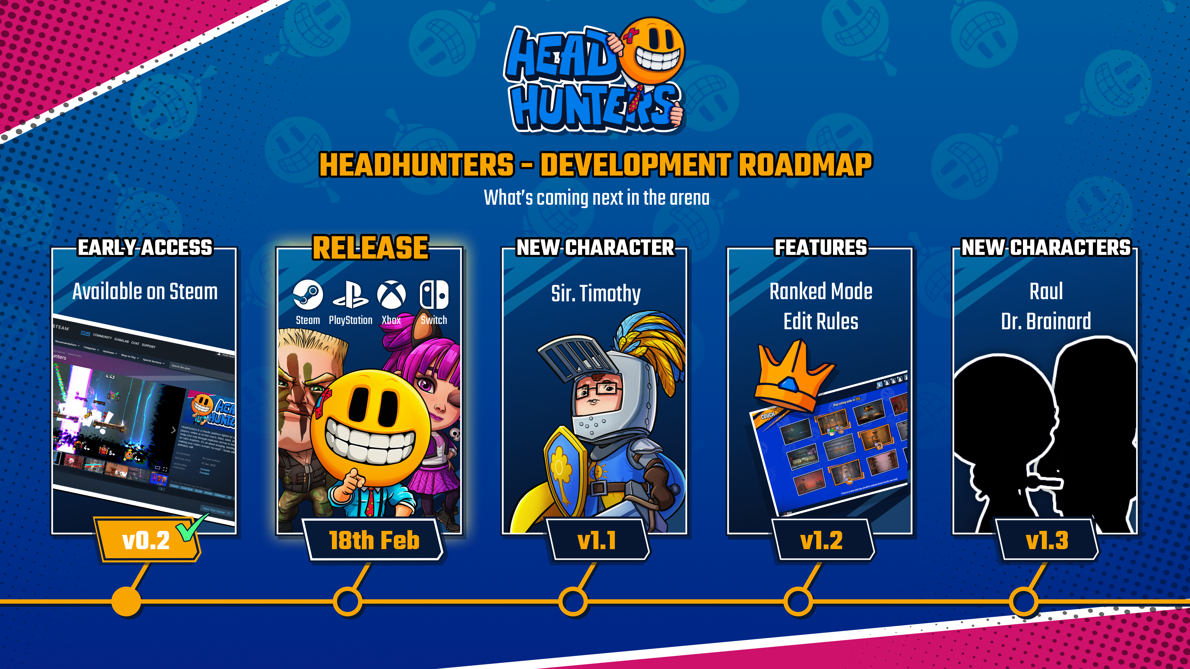 HeadHunters is a chaotic couch/online party game where you don’t pick a character… you are the head. Attach to different bodies to gain new weapons and abilities, and adapt on the fly. Improvise. Adapt. Overcome. Up to 4 players. Fully cross-platform. Don’t lose your head.