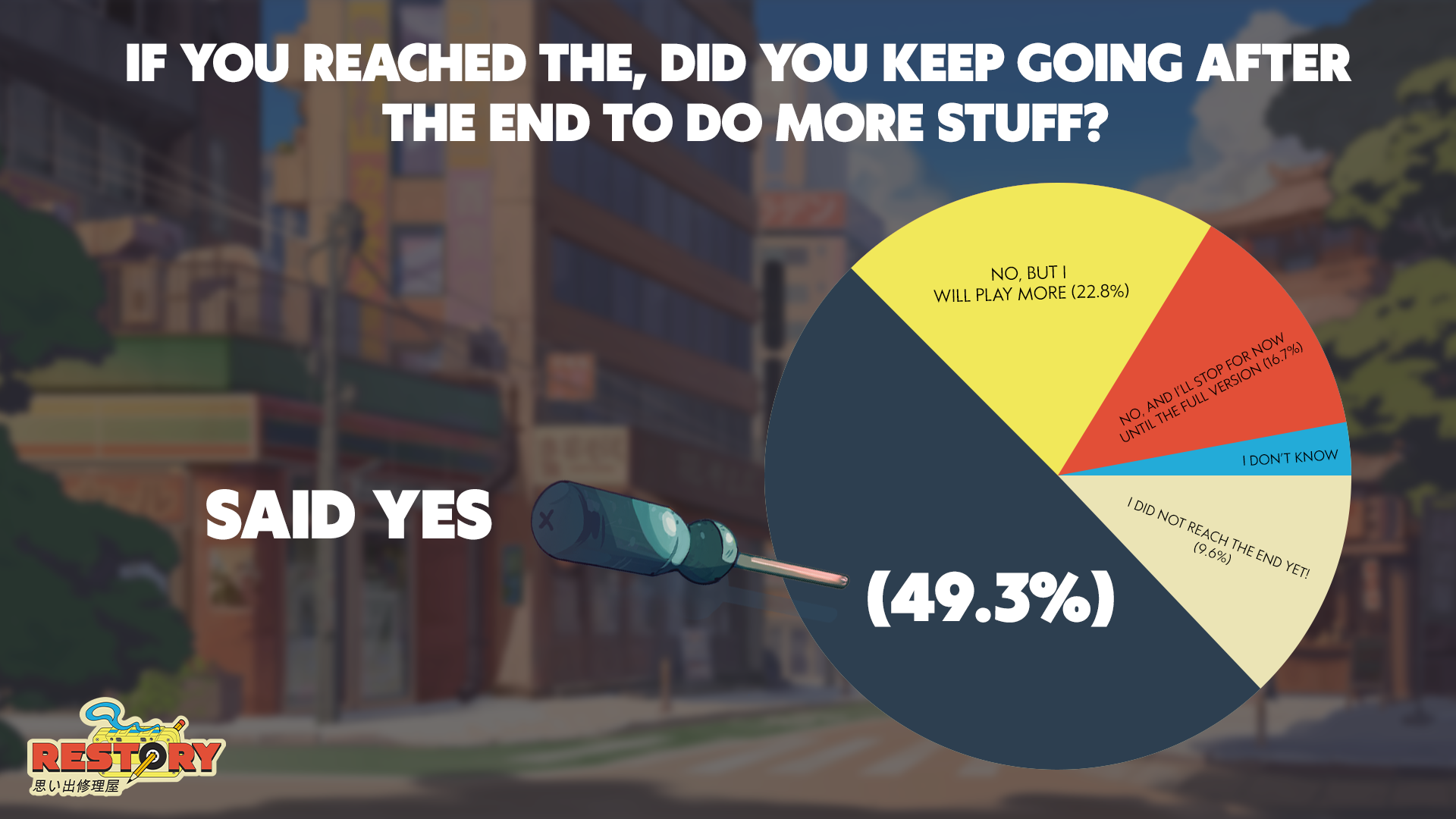 Which is really impressive, because one of our biggest challenges was to make ReStory both story-driven, but at the same time feel like a fun systems-driven game you can play for many hours. In the full version, we would double down on that, introducing more fun late-game content and long-term goals, aiming for tens or even hundreds of hours of playtime.