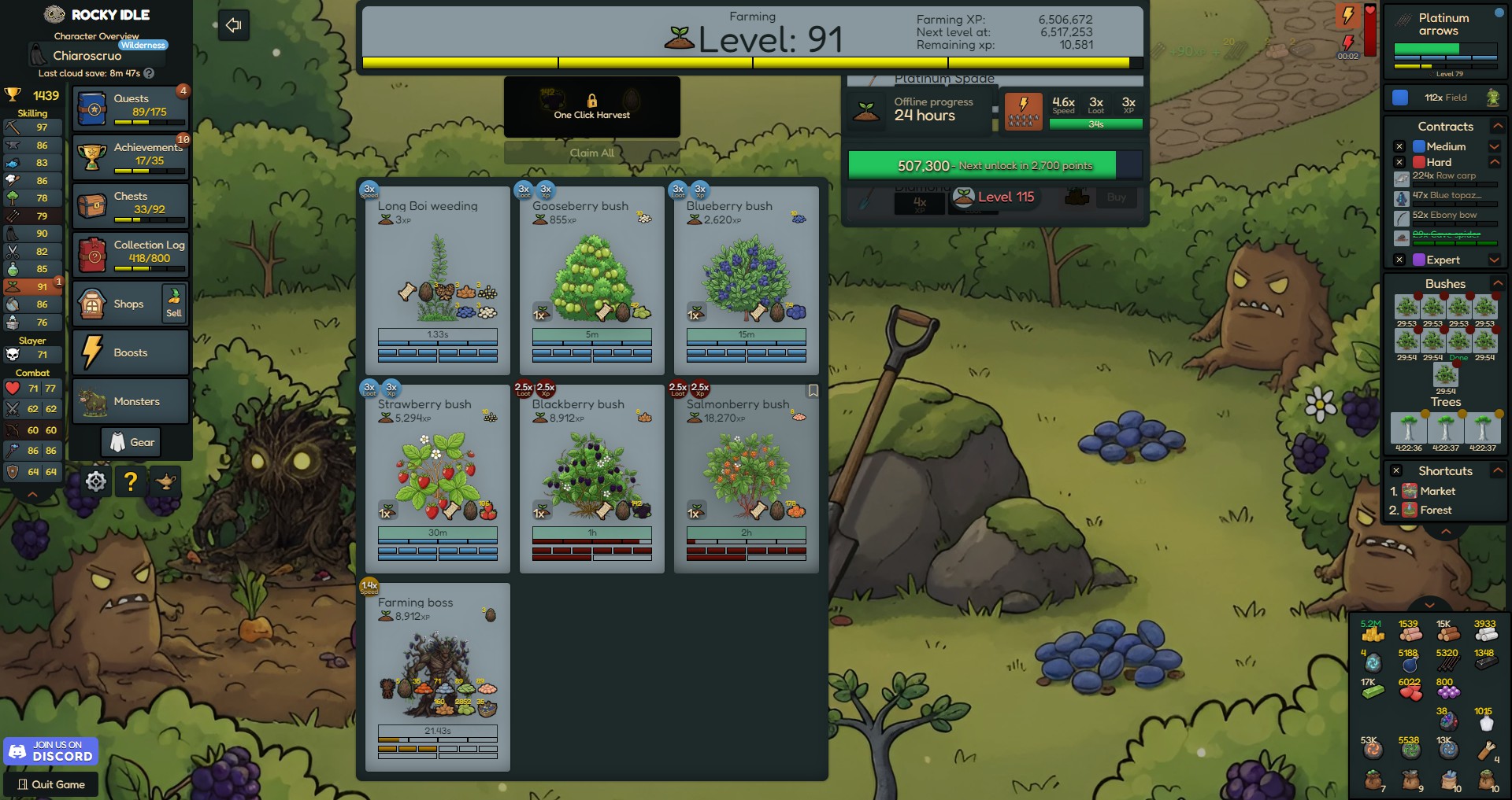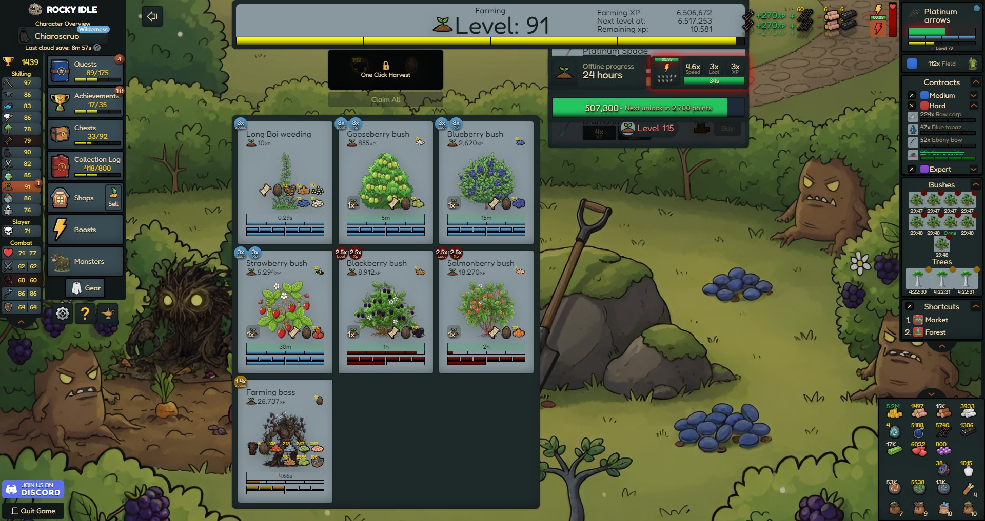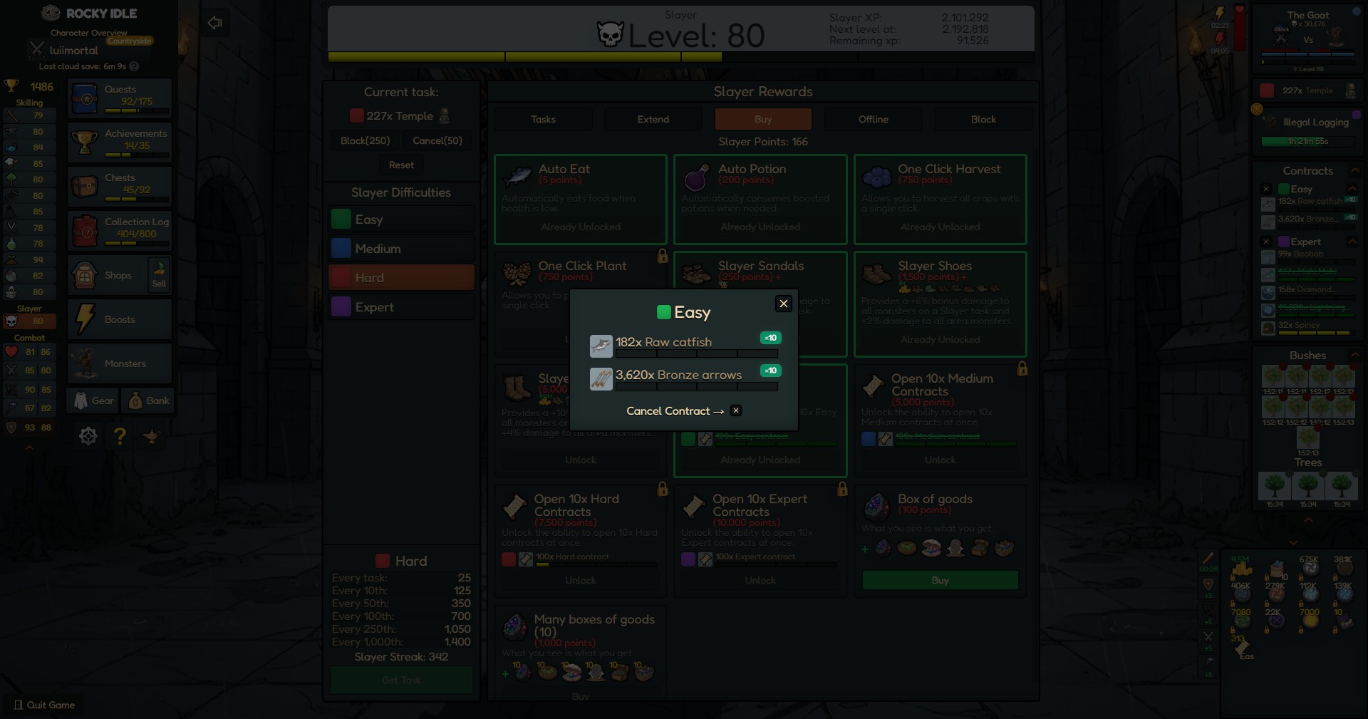 Rocky Idle is a single-player idle/incremental game. Level up your skills, gather resources, and complete your collection log.