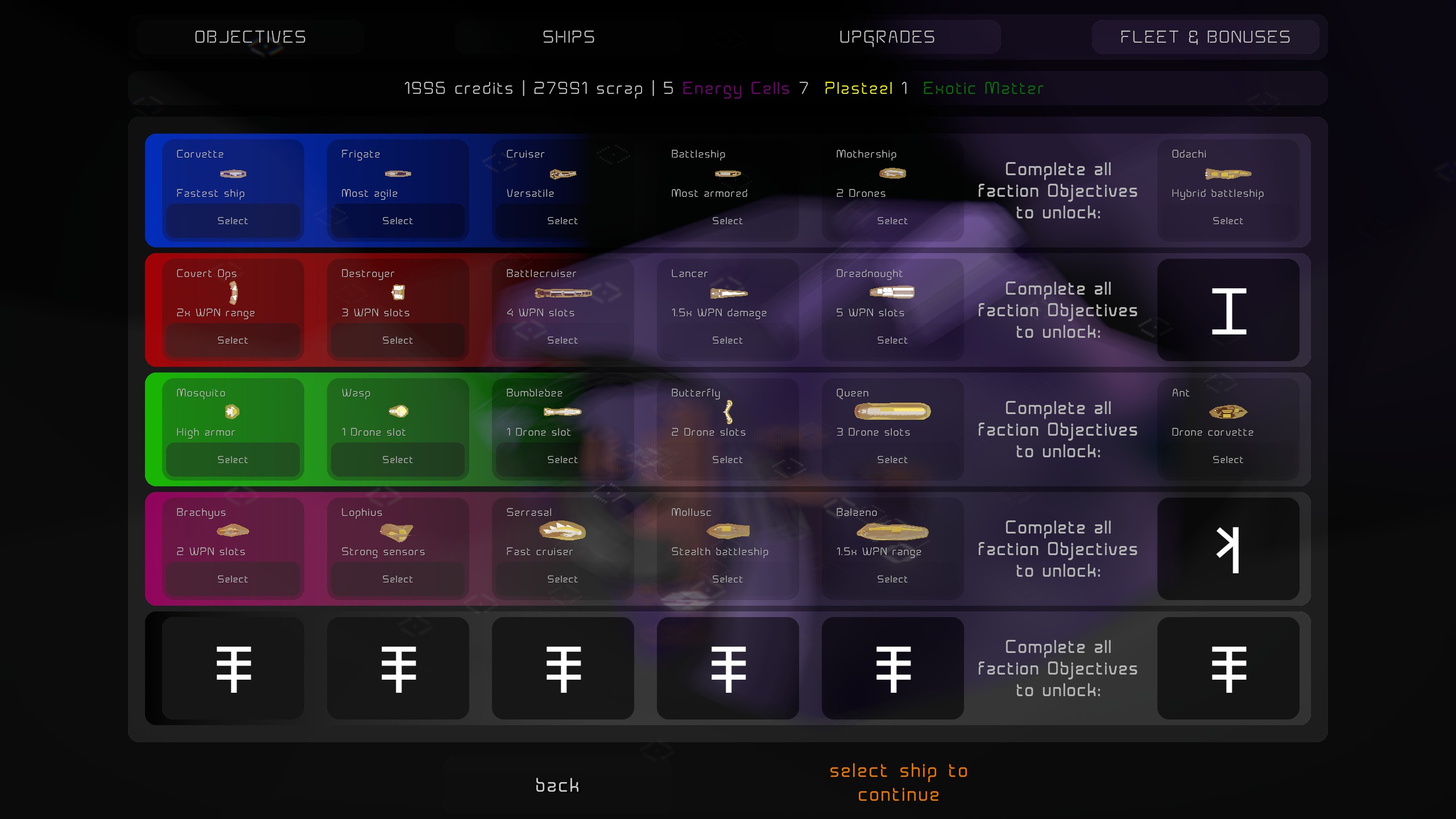 A space tactics extraction roguelite. Explore space, pick fights, collect loot, then escape. Upgrade and unlock new ships to strengthen your fleet and face tougher foes.