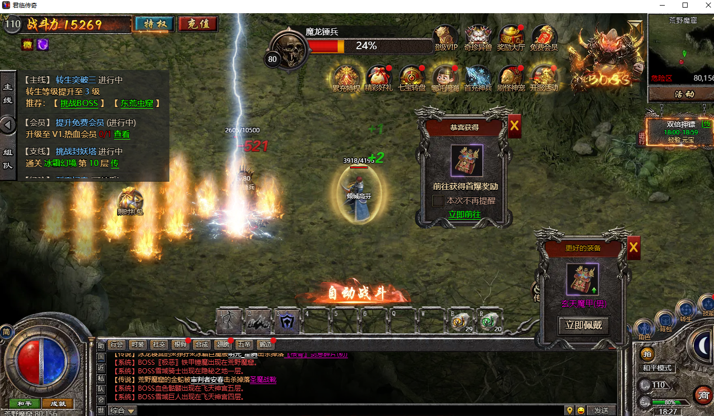 正版授权,重回经典的热血传奇国战版。超激情打宝体验,极品装备、高级技能打怪爆,狂虐BOSS,超高爆率爆到爽!还在等什么?战鼓已擂起,热血已沸腾,拿起屠龙宝刀,共筑传世霸业!
