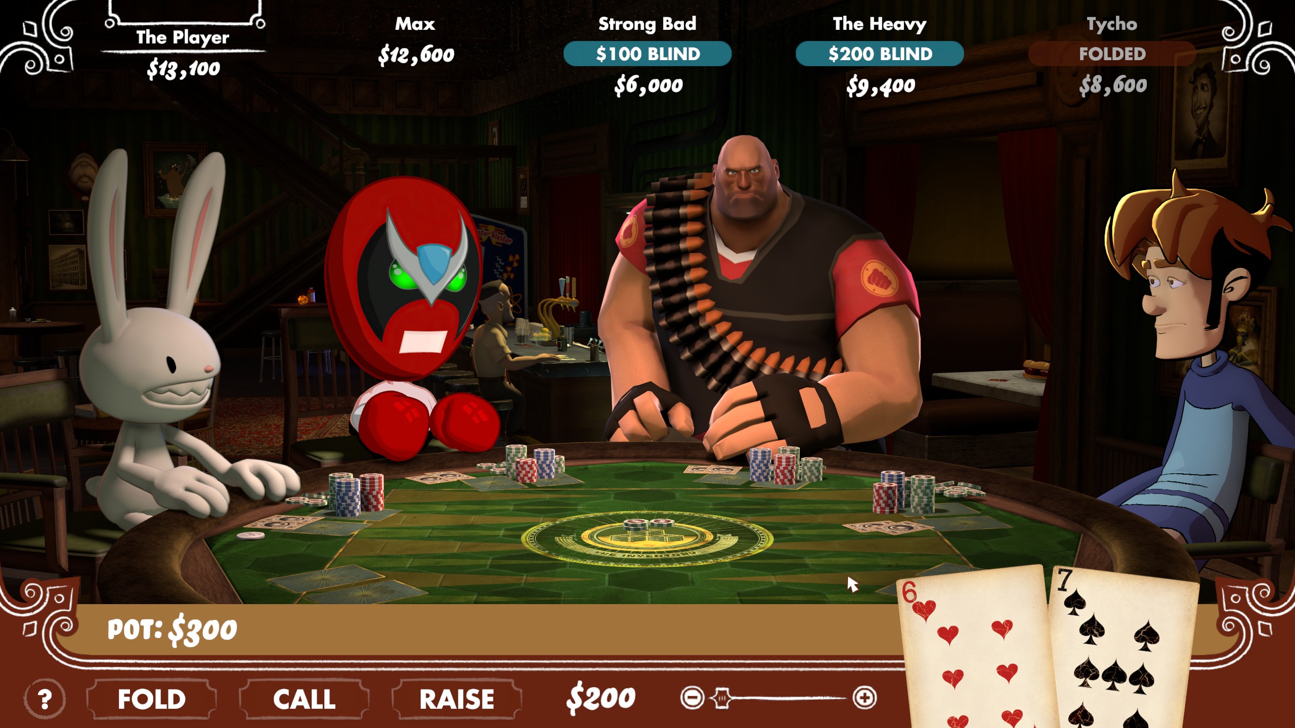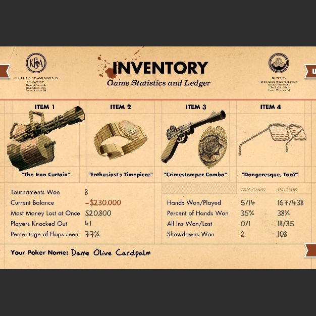 Seven years after the Inventory closed its doors, this underground social club has reopened for business. Play No Limit Texas Hold’em with four video game icons in a high-stakes battle of cards, bets, and trash talk.