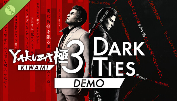 A free demo version of Yakuza Kiwami 3 & Dark Ties. Experience both games included in this action-adventure beat ‘em up. Yakuza Kiwami 3 features Kazuma Kiryu's fight to protect his loved ones. Dark Ties features Yoshitaka Mine's action-packed pursuit of true bonds in Japan's underworld.