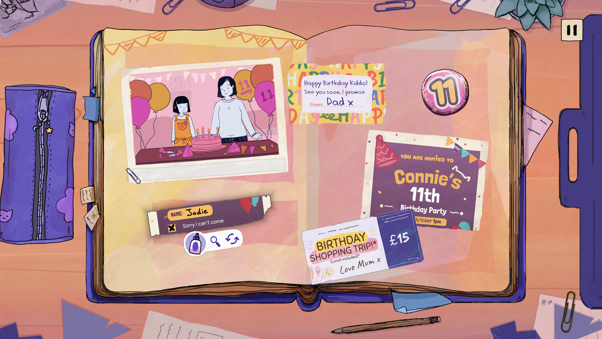 Sort through mementos and solve light puzzles on every page to discover the real-life-inspired story of Connie and Beth’s friendship. Enjoy the opening pages of a carefully crafted experience full of emotional highs and lows - and plenty of cats!