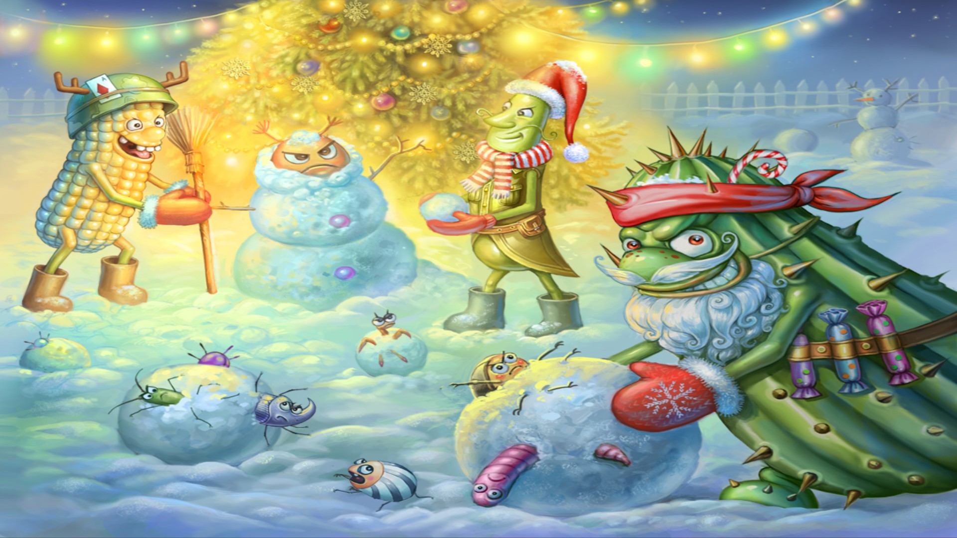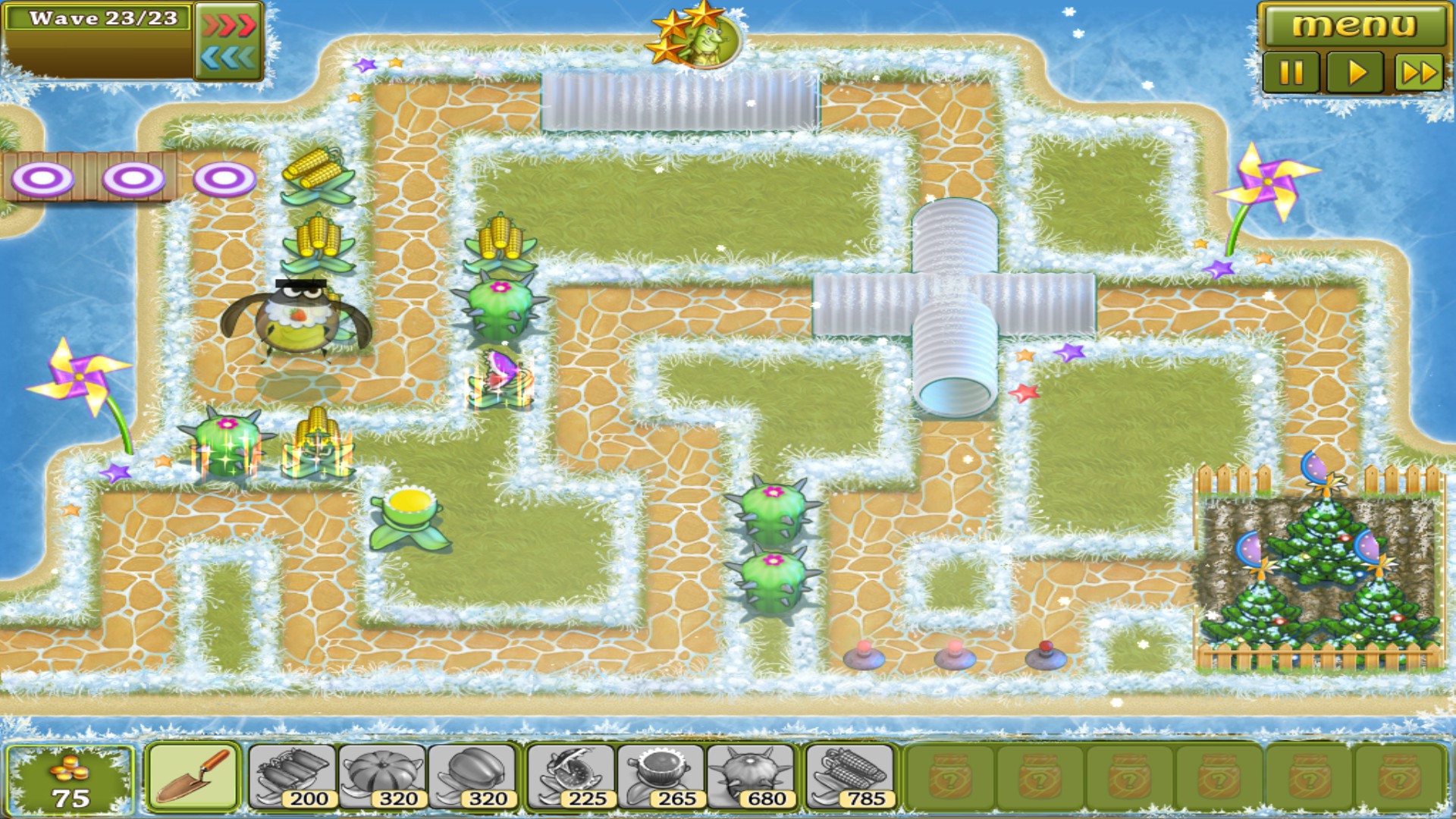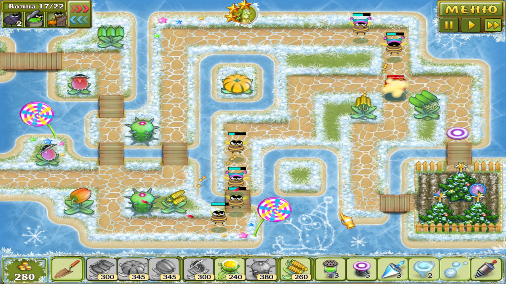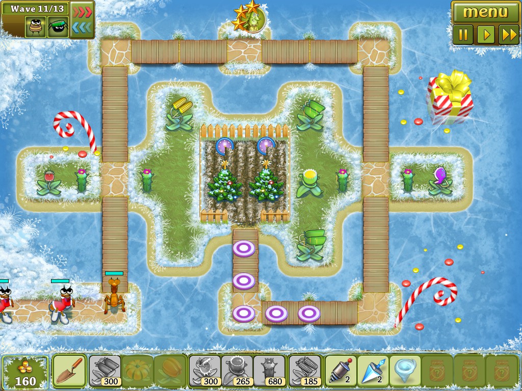 Rescue the Christmas trees from swarms of ravenous insects.