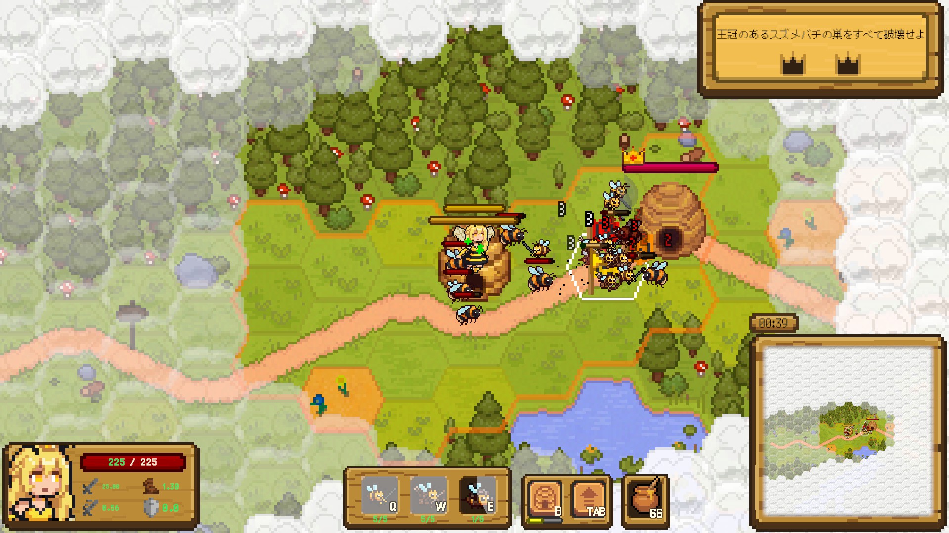 "Be Queen Bee" is an action-strategy game where you become the Queen Bee and command your swarm with pheromones. Defeat predators, seize flower fields to escape hunger, evolve your swarm with honey, and strategize in real time to secure victory.
