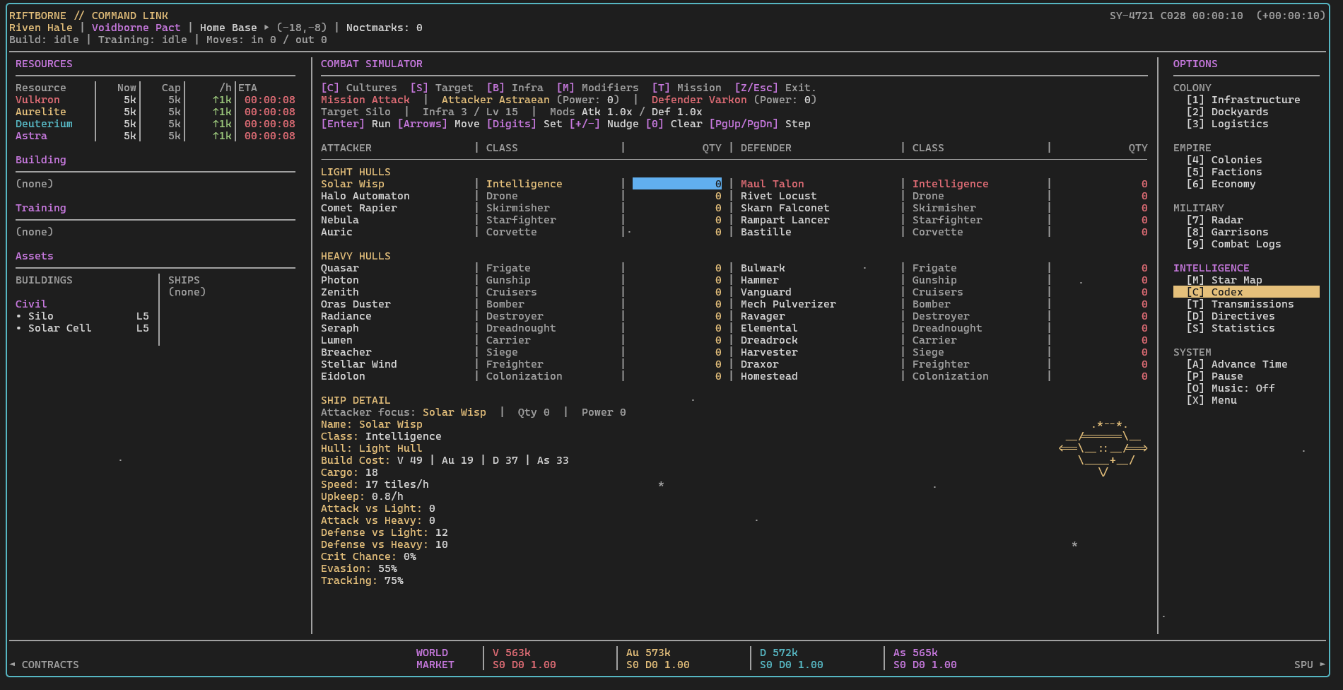 Riftborne is a classic terminal based, real time, grand strategy game. Construct space ships. Take part in factional warfare. Hire galactic hit-men on your rivals. Raid neighbors for rare resources. Train spies to infiltrate enemy bases for key intel. Grow your empire to dominate the galaxy.