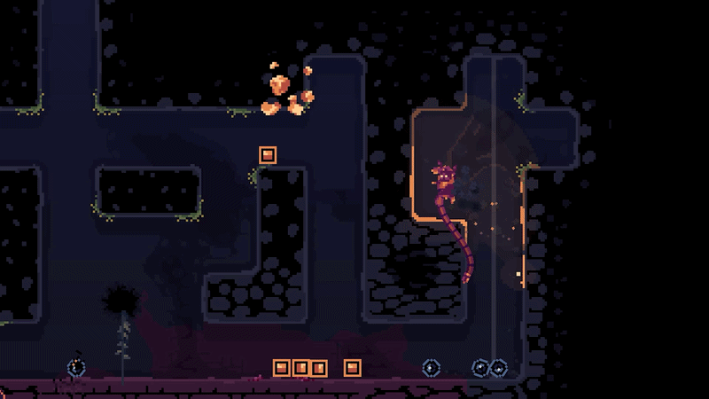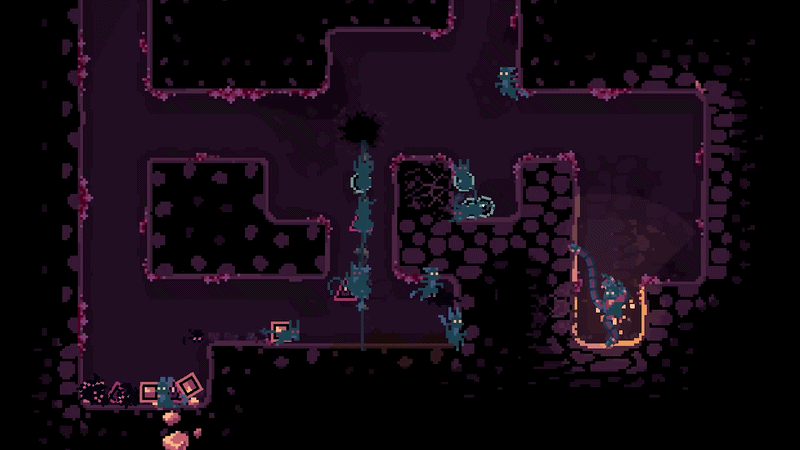 You might have noticed the imposing and extra cool tentacle arms of the Beastmaster. They are not only for calling the Catgoblins. You also traverse the mine with them. This results in a movement similar to the existing keepers, with one big exception: you need tiles that tentacles can grab. This means you cannot just mindlessly destroy all tiles. Huge empty spaces are no friend of the Beastmaster, or her Catgoblins.