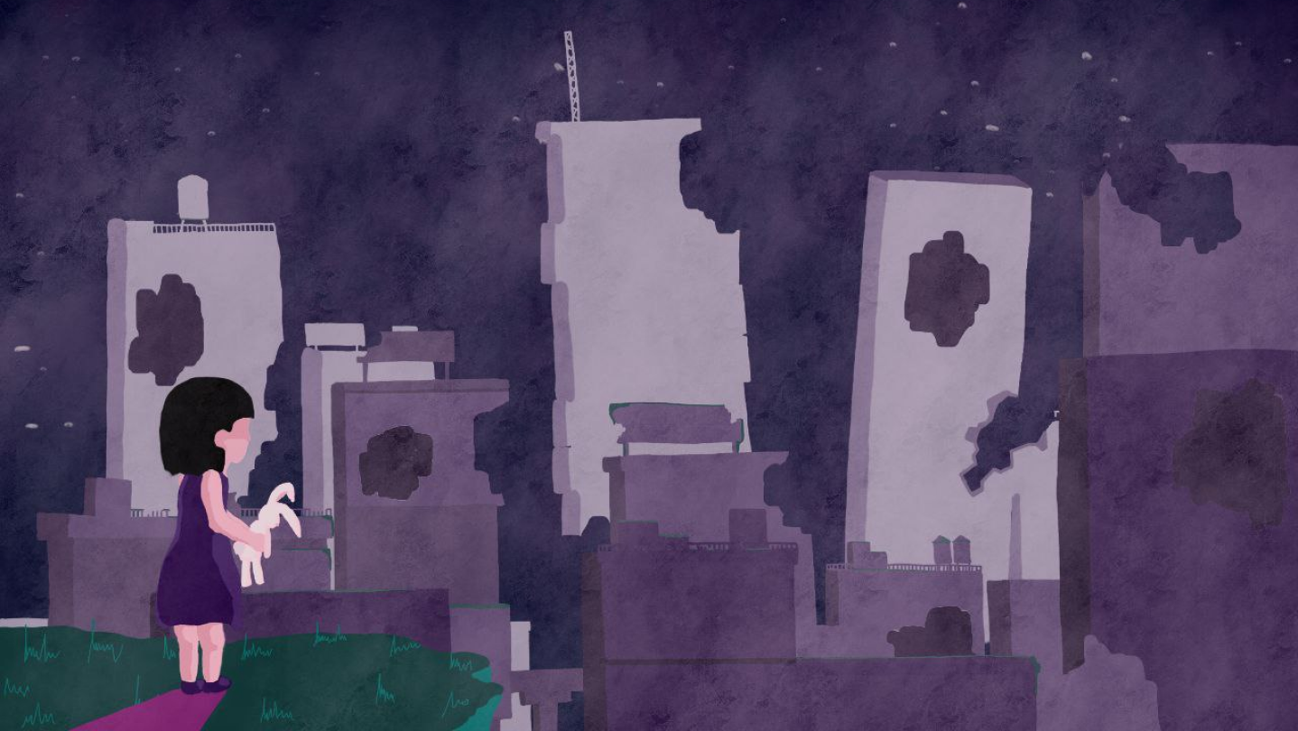 Our little protagonist is followed by an echo of herself, which replicates her exact movement with a small delay.