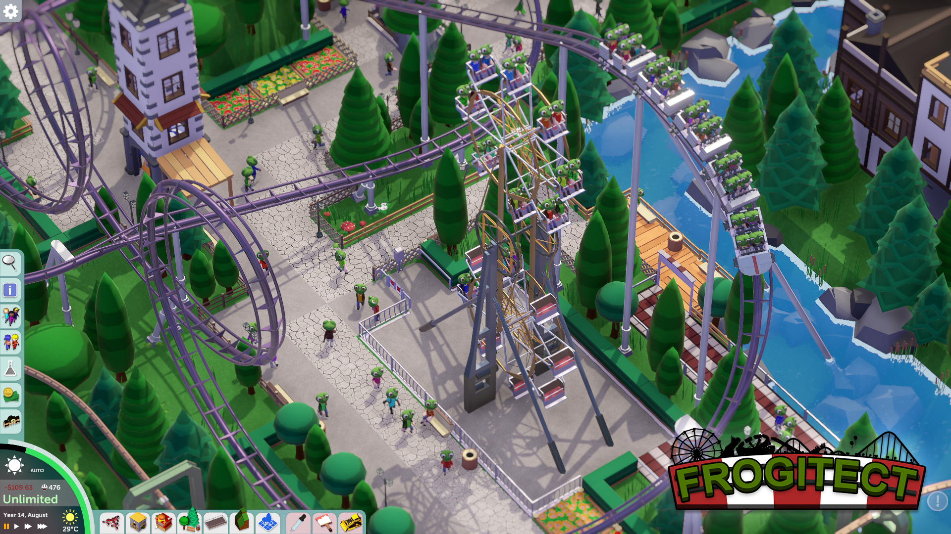 Parkitect is a business simulation game that charges you with the construction and management of theme parks! Bringing back the best of classic theme park games with many new features and content on top. Now supports online co-op with up to 8 players!