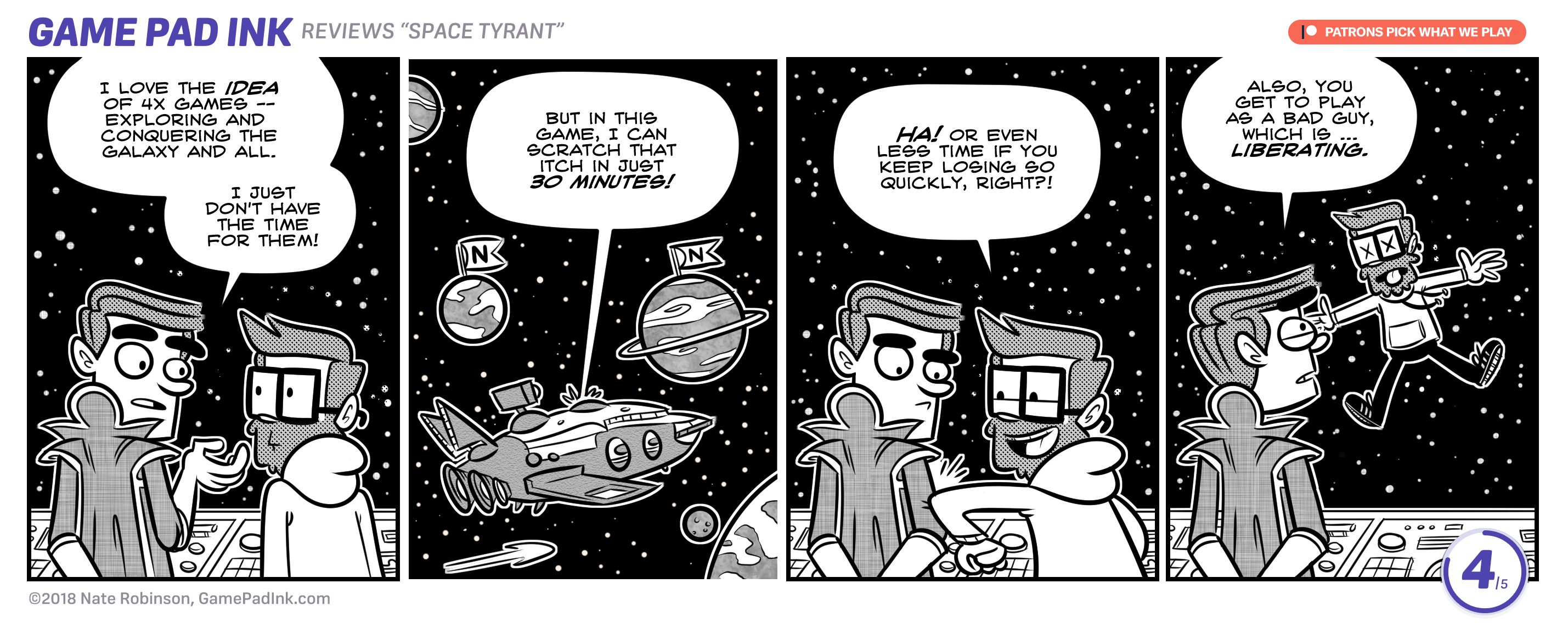 Terrorize the galaxy for fun and profit! Space Tyrant is a surprisingly deep beer & pretzels strategy game set in a darkly humorous future. Build a mighty space force, disintegrate peaceful aliens, and rule irresponsibly on your relentless march to total domination.