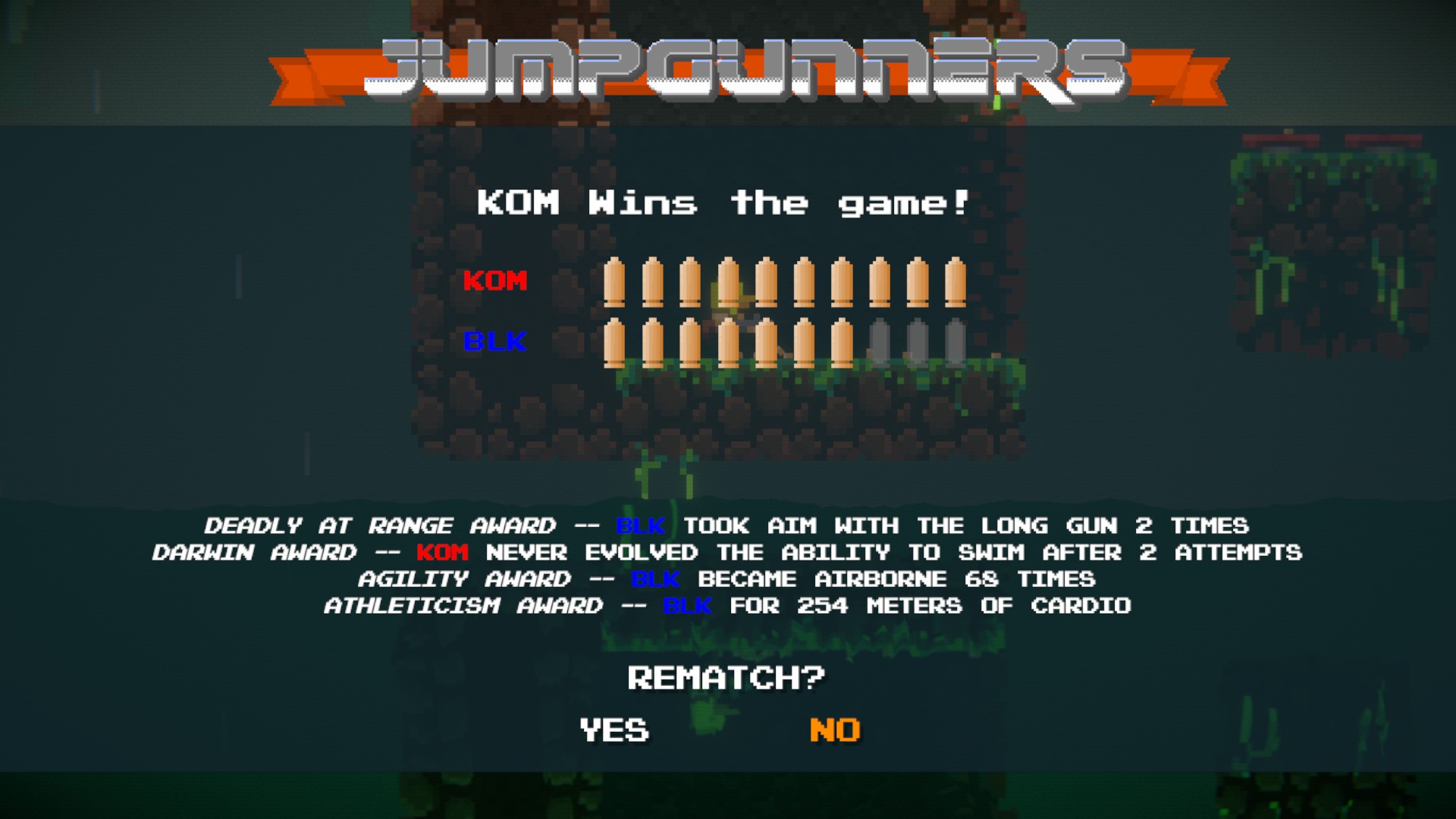 Jump Gunners is the definitive couch local multiplayer combat game for 1 to 4 players, matching fast paced hilarious recoil jumping mechanics, with core gameplay that is easy to learn but hard master. Become the champion among friends, as you fight alone, or team up together against your foes.