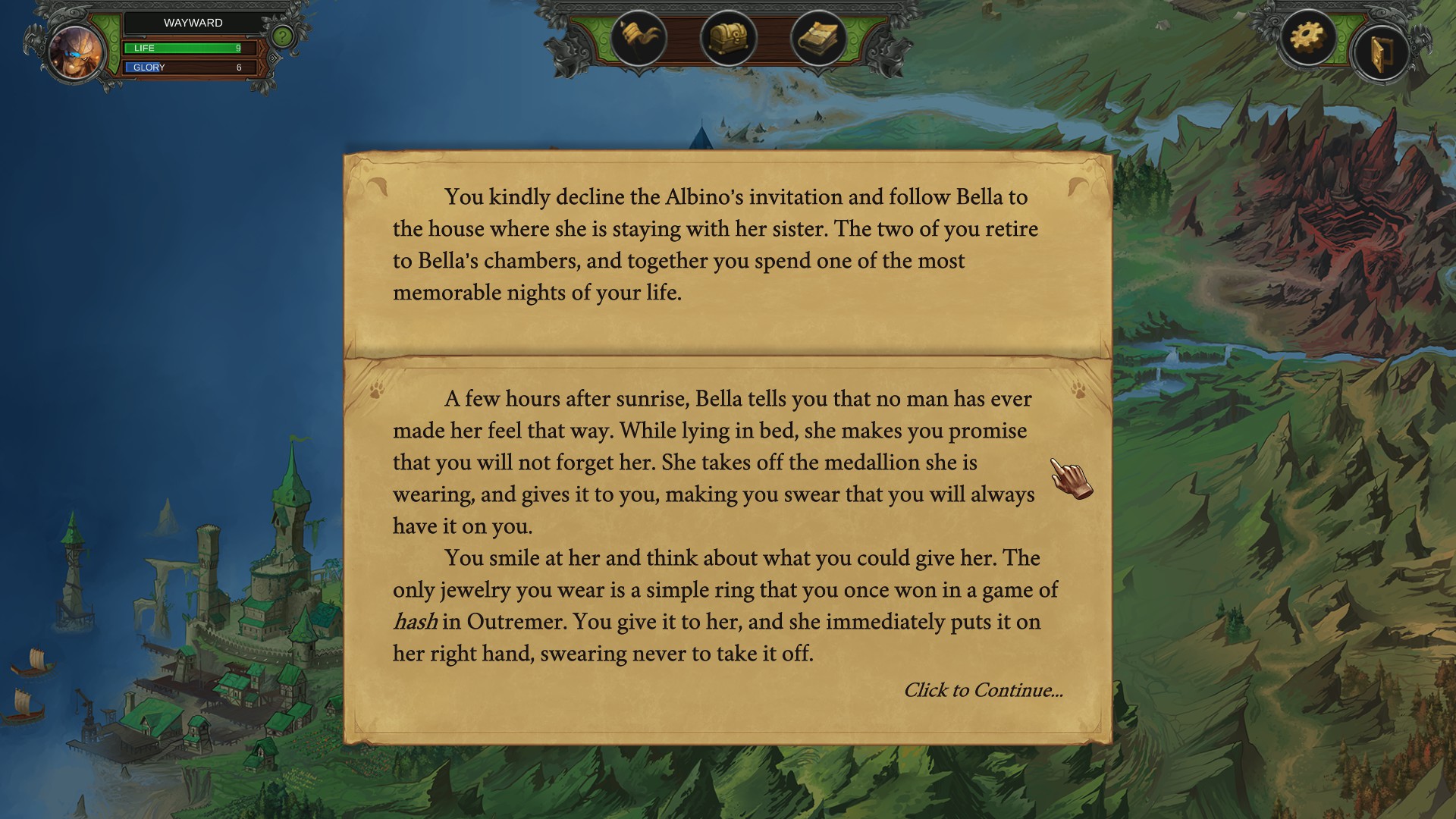 Dust and Salt is a text-based narrative adventure with a pinch of turn-based tactical battles which has you as the main hero leading your troops in a gritty, low-power, medieval fantasy world. You decide where to go and whom to form alliances with.
