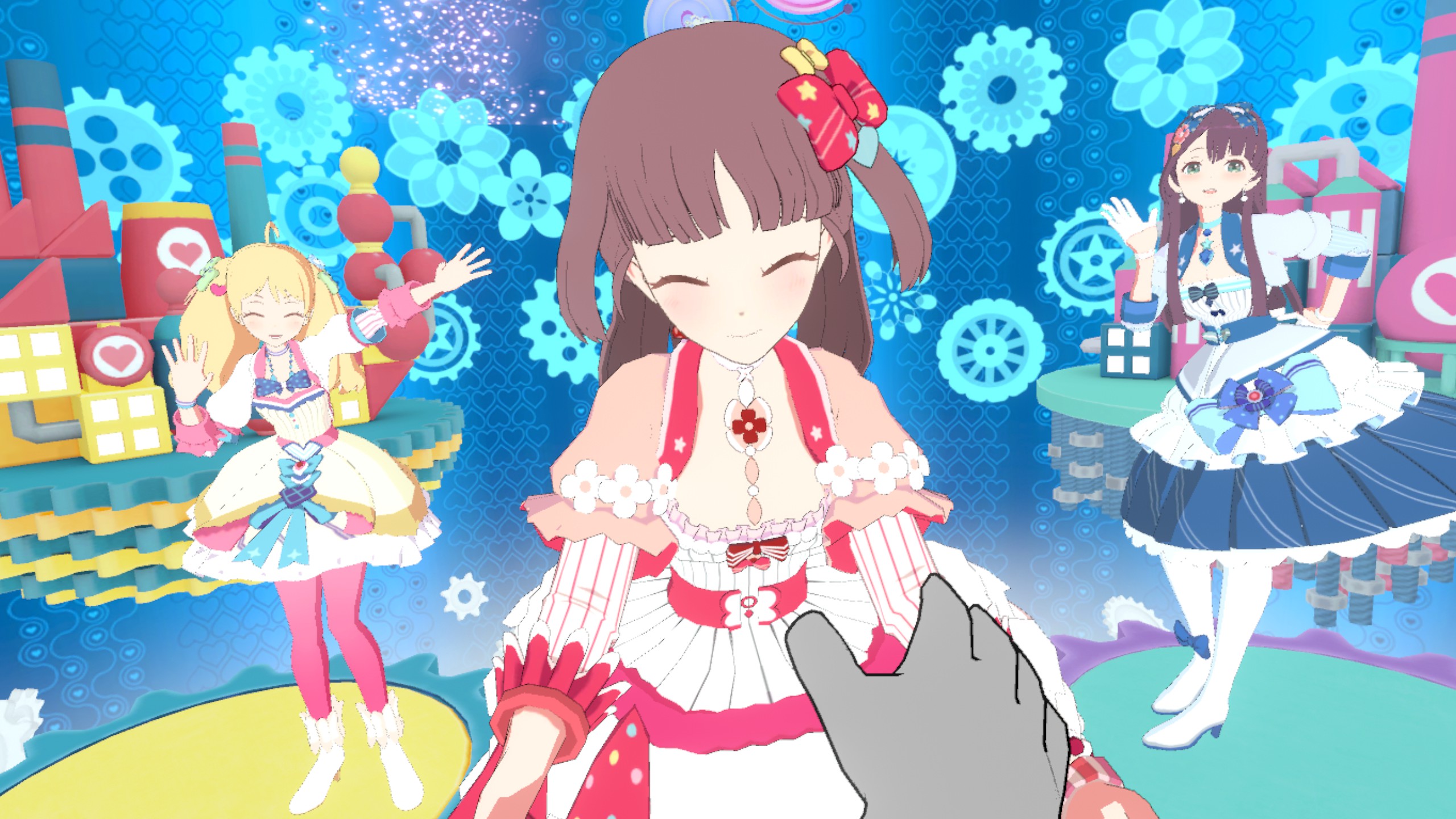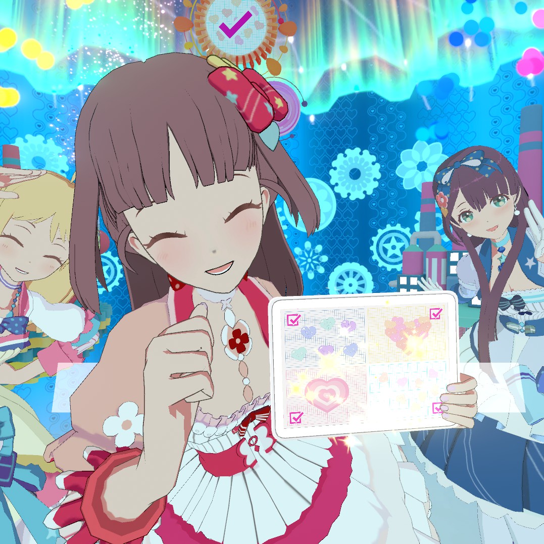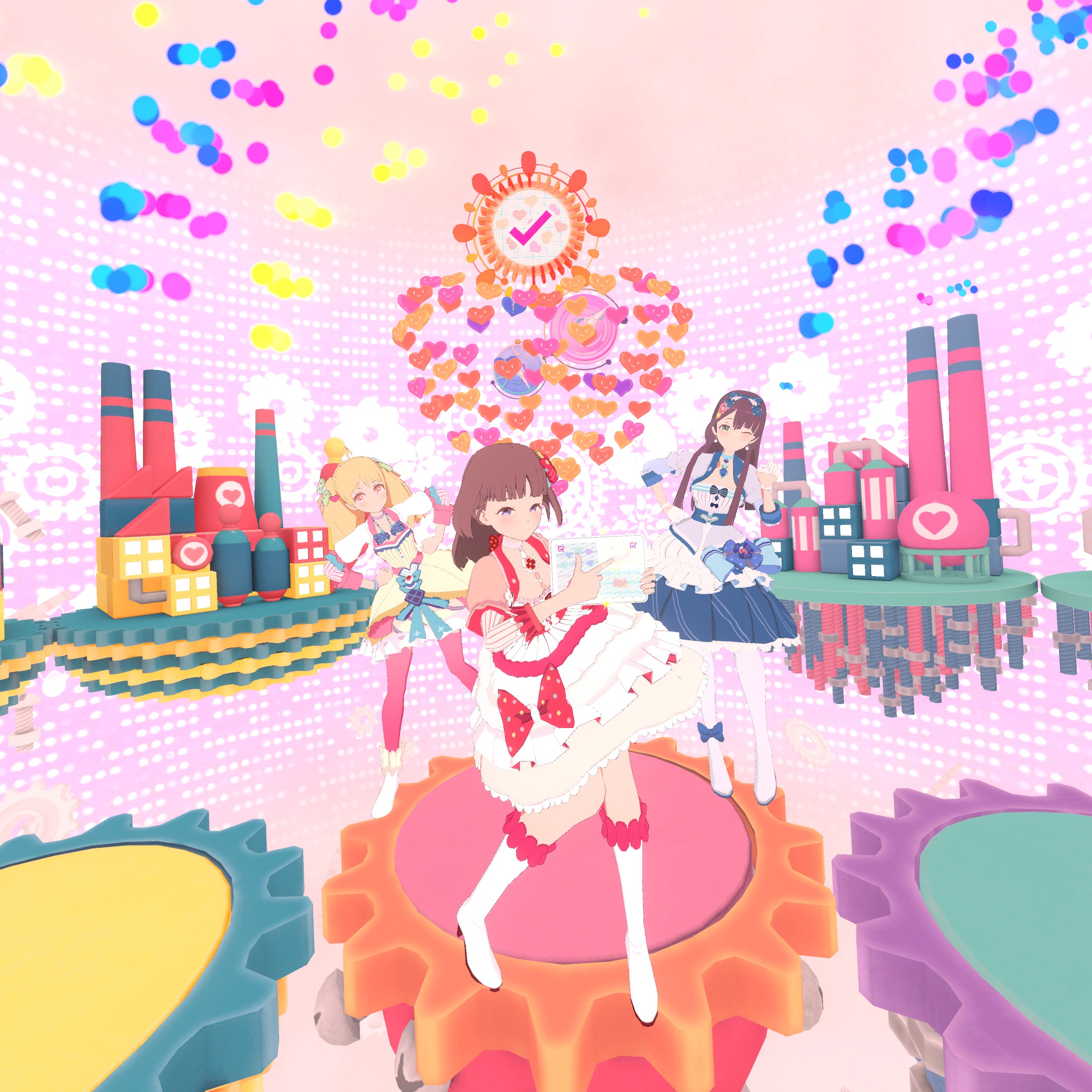 Enjoy the song and performance in this VR music video set in a virtual world. This time, your destination is a magic factory where the wounded hearts of the world go to be healed. As the girls' leader, it's your job to bring a smile back to the world!