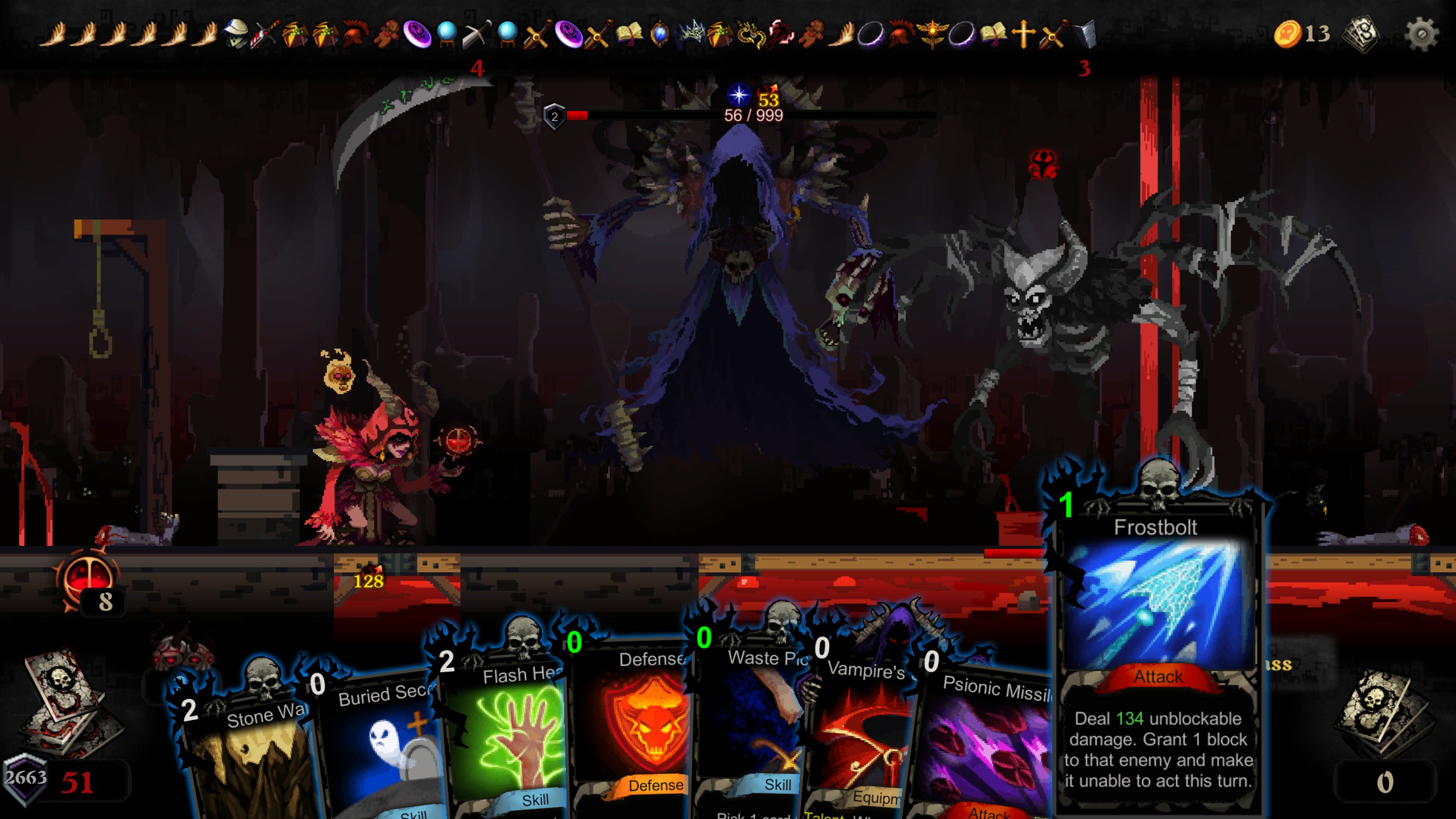 This card game combines elements of roguelike and deckbuilding. During the game, you shall strive ahead, gathering cards to build a unique deck and use it to defeat the enemies getting in your way. You will have to choose between escaping or try to defeat Death, who is relentlessly pursuing you.