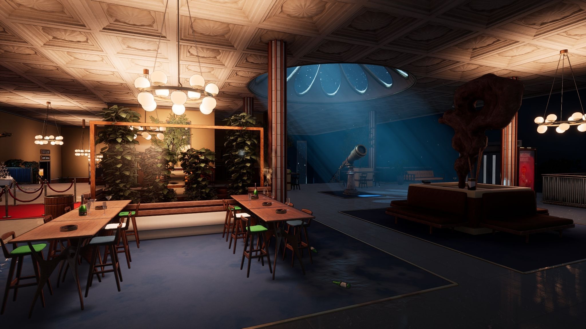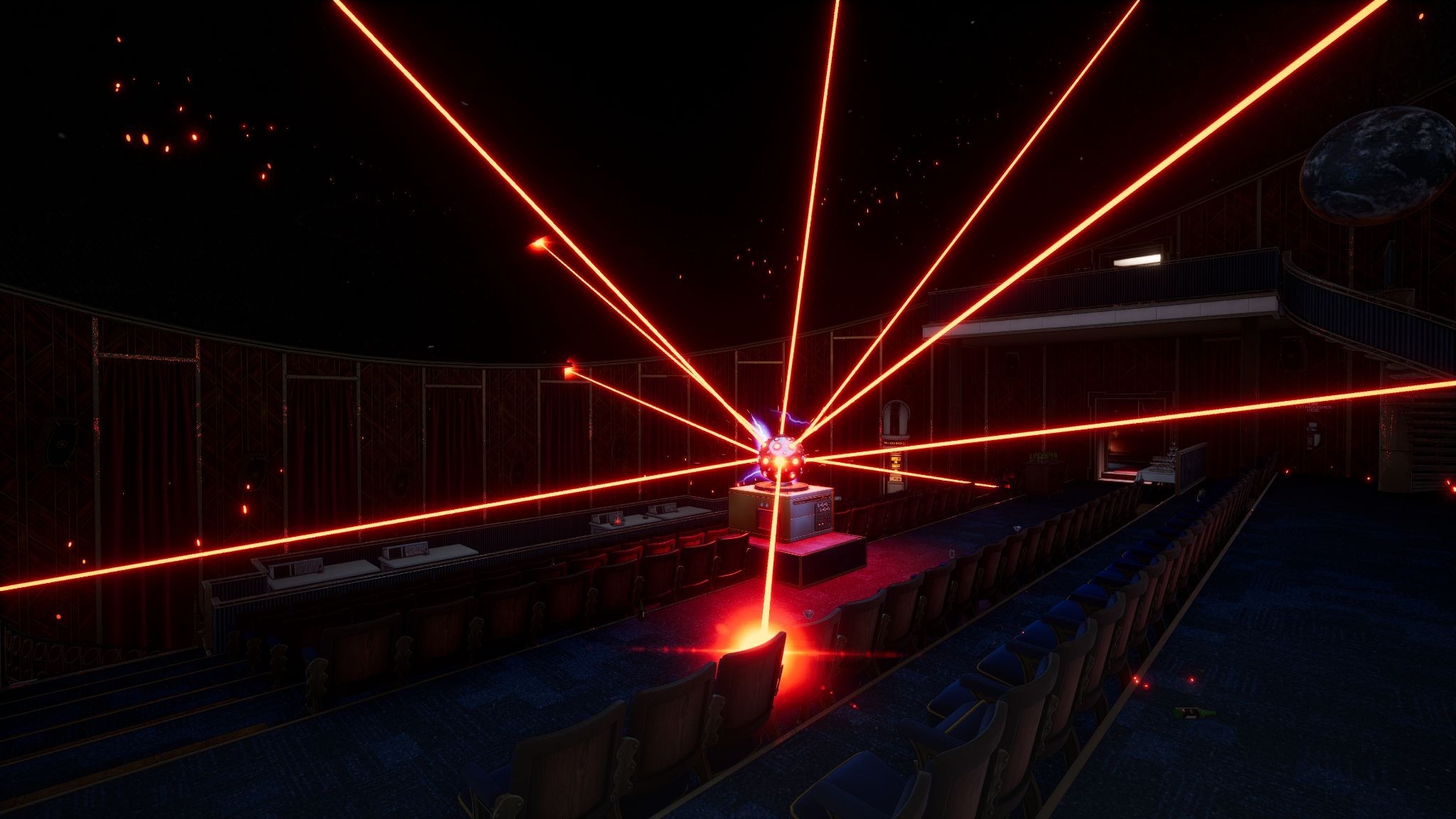 First Class Trouble is a party game where players must work together and against each other to survive a disaster. The goal is to shut down a deadly A.I. Some players are impostors, secretly playing as human-looking killer robots intent on betraying the other players.