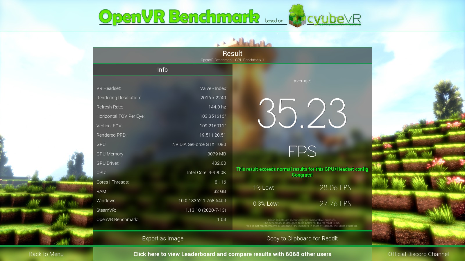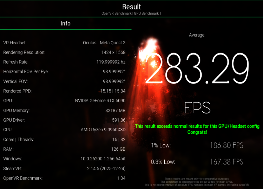 Benchmark your VR setup - OpenVR Benchmark is the first benchmark tool for reproducibly testing your real VR performance, rendering inside of your VR headset. See if your hardware performs correctly! VR headset required.