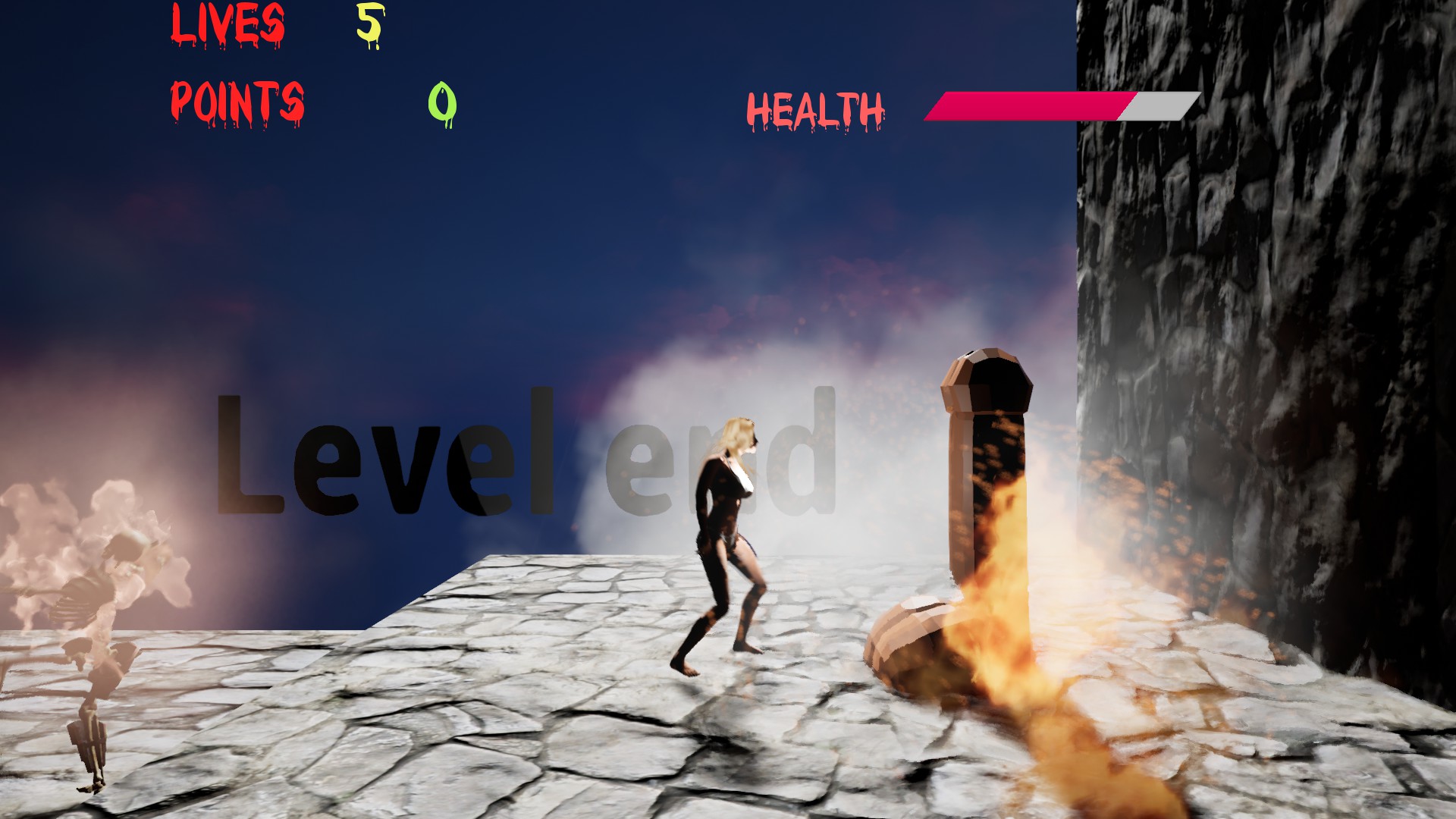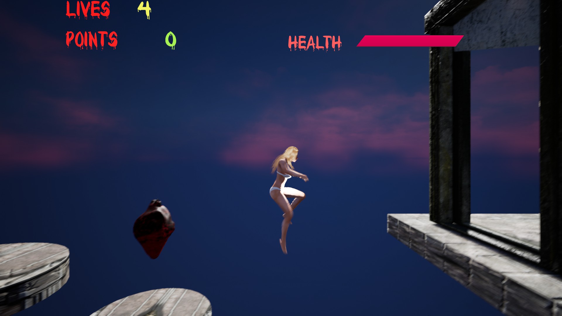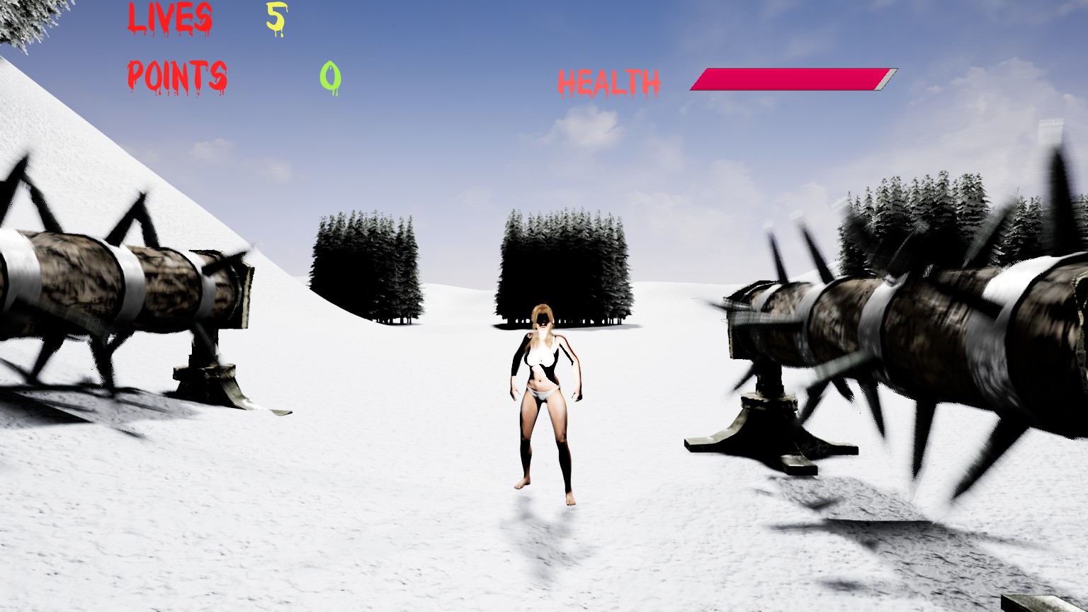 2d platformer. Play as almost naked woman character. Avoid objects and enemies and find level end, which contain mystery...