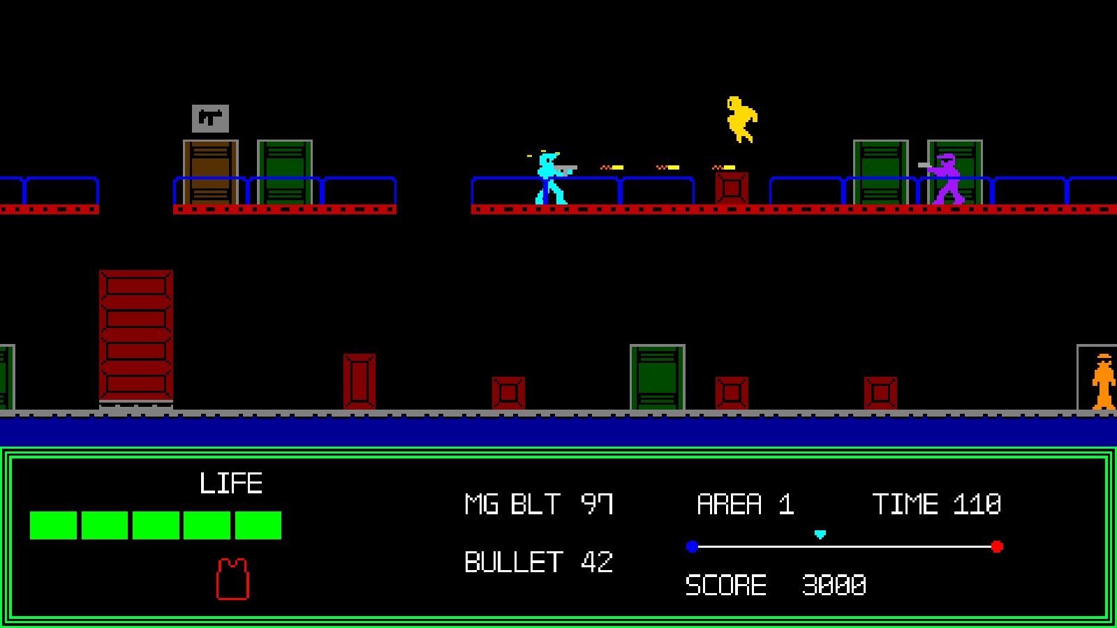 Rolling Bird is a retro arcade shooter, heavily inspired by Namco's 1986 classic 'Rolling Thunder'.
