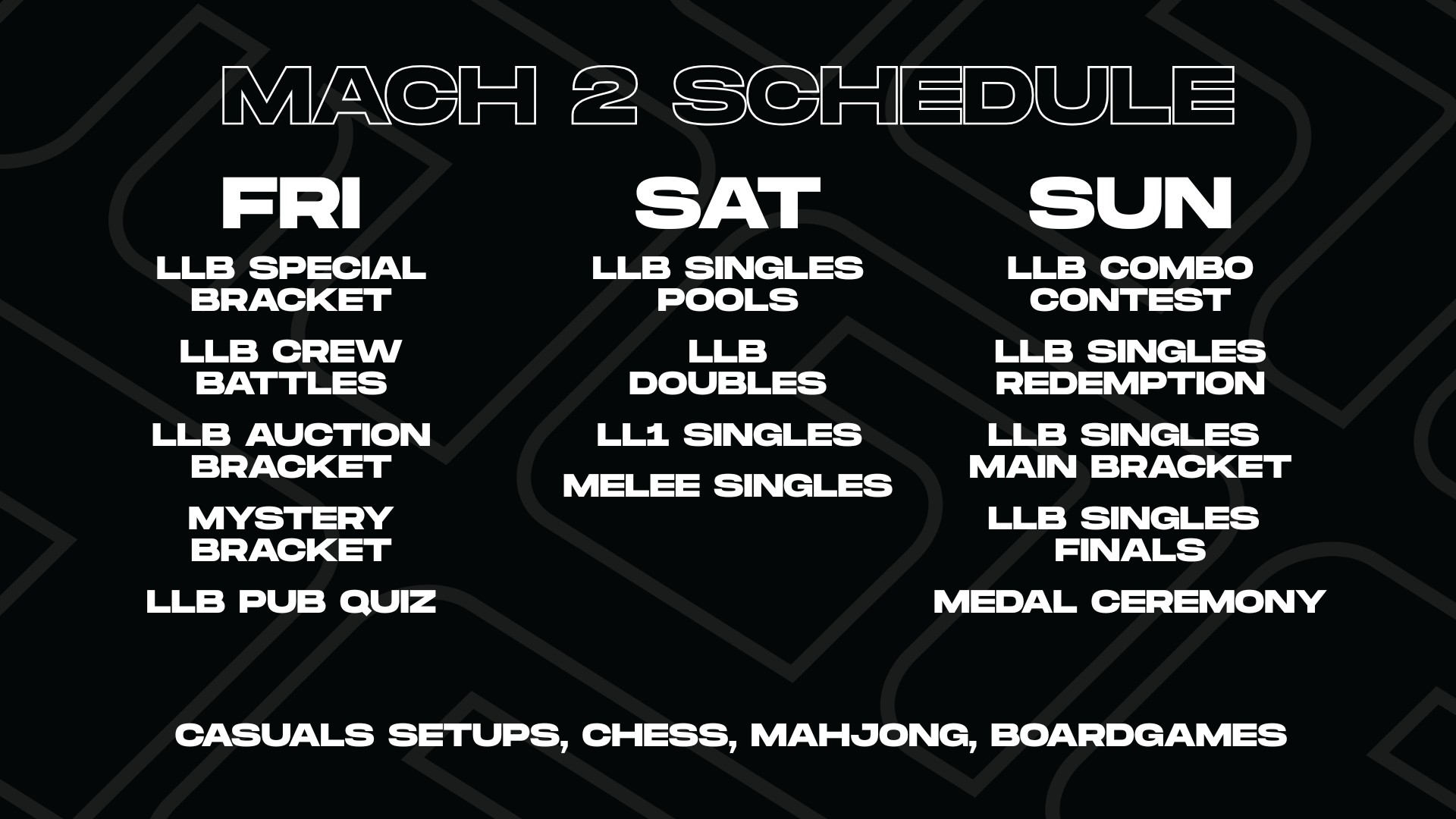 Sign up at https://www.start.gg/tournament/mach-2, learn more about event details, travel, accomodation at https://mach.hyhy.gg and talk with other attendees on the mach 2 discord