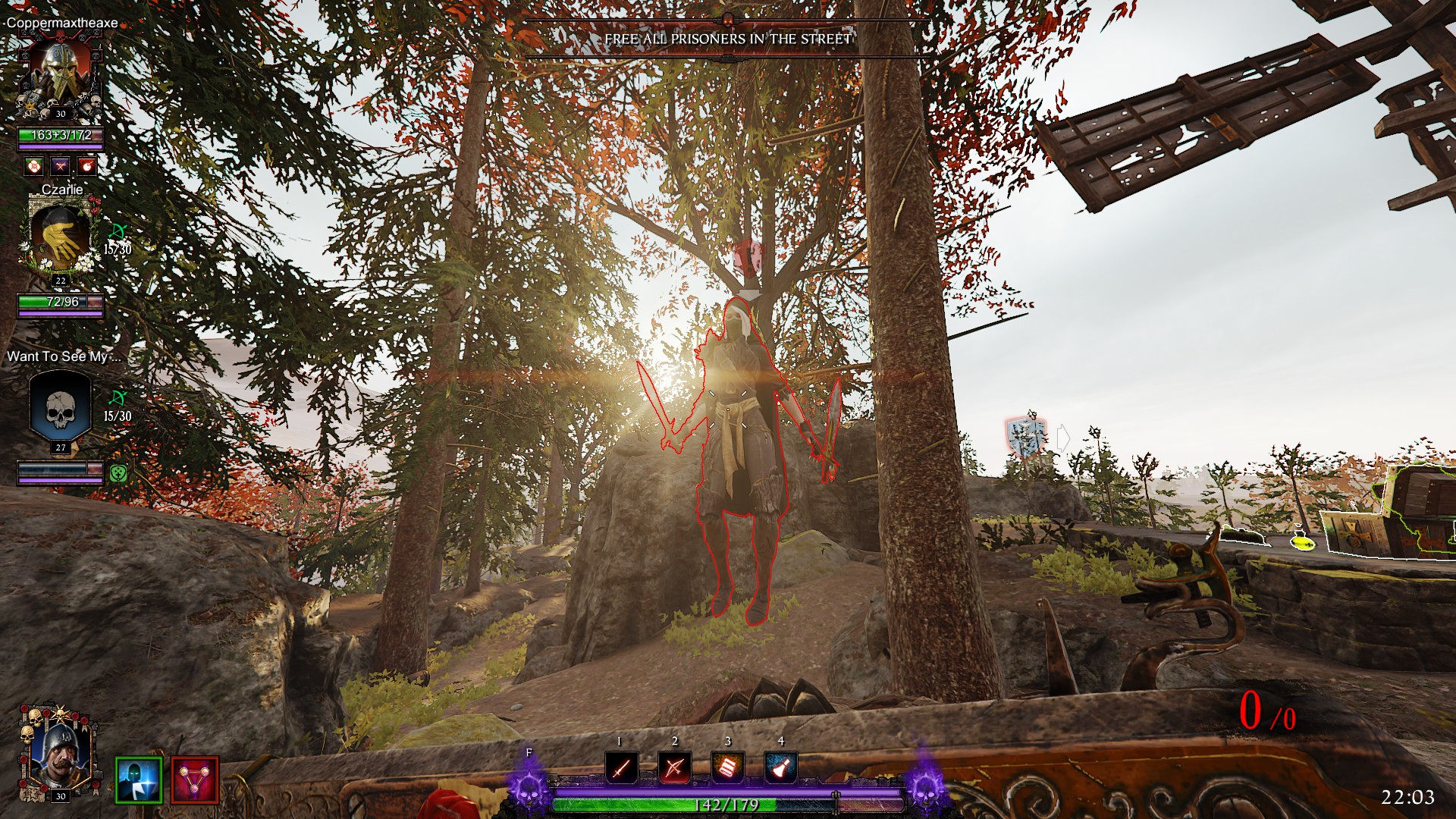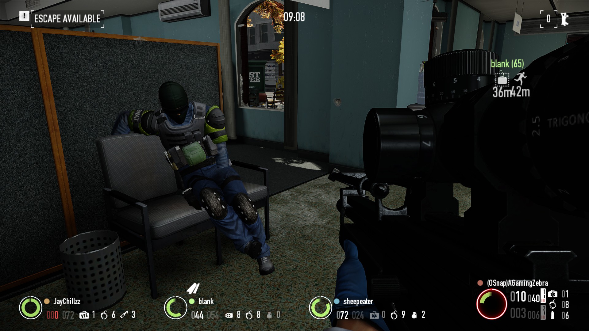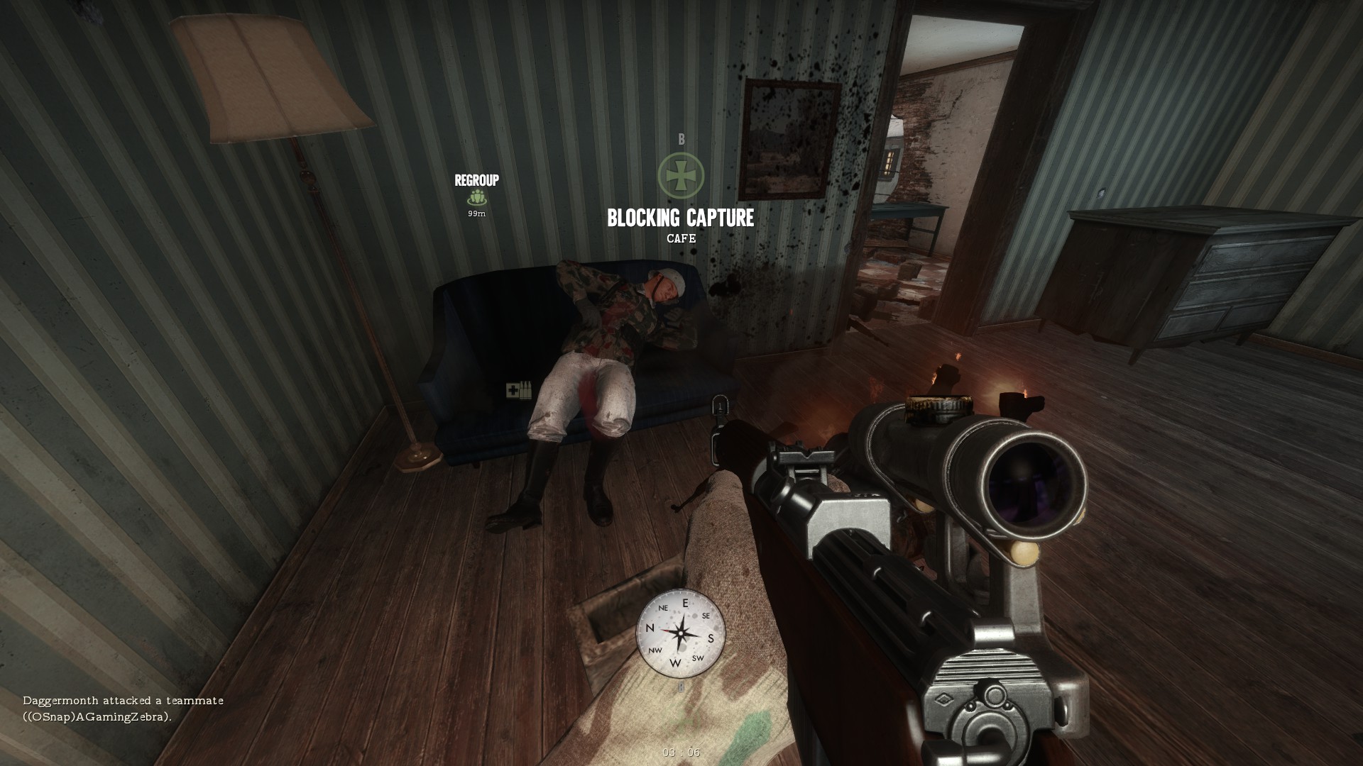 I have to resort to the cannon mounted at the top of the stairs loaded with grape shot, "Tally ho lads" the grape shot shreds two men in the blast, the sound and extra shrapnel set off car alarms.