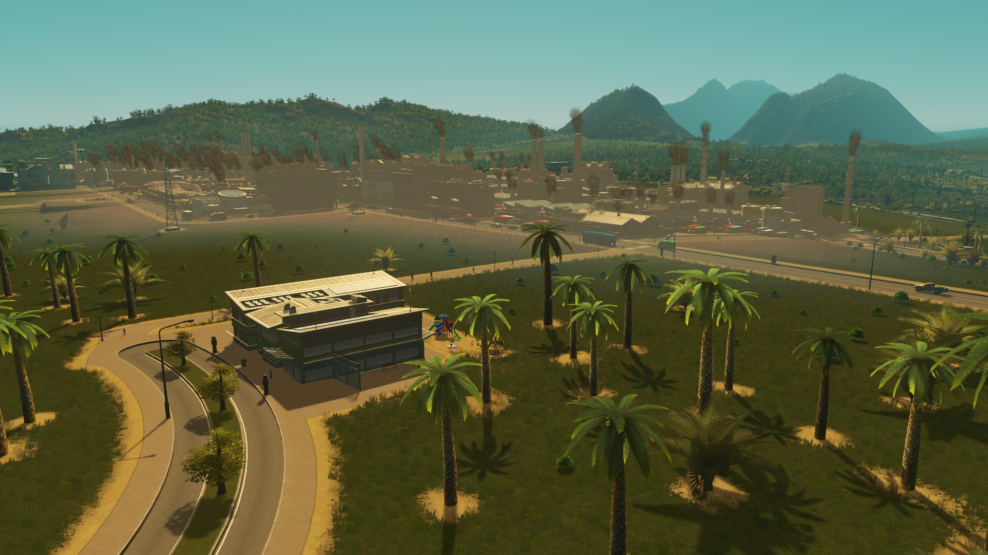 An elementary school having a view of some nice industry!