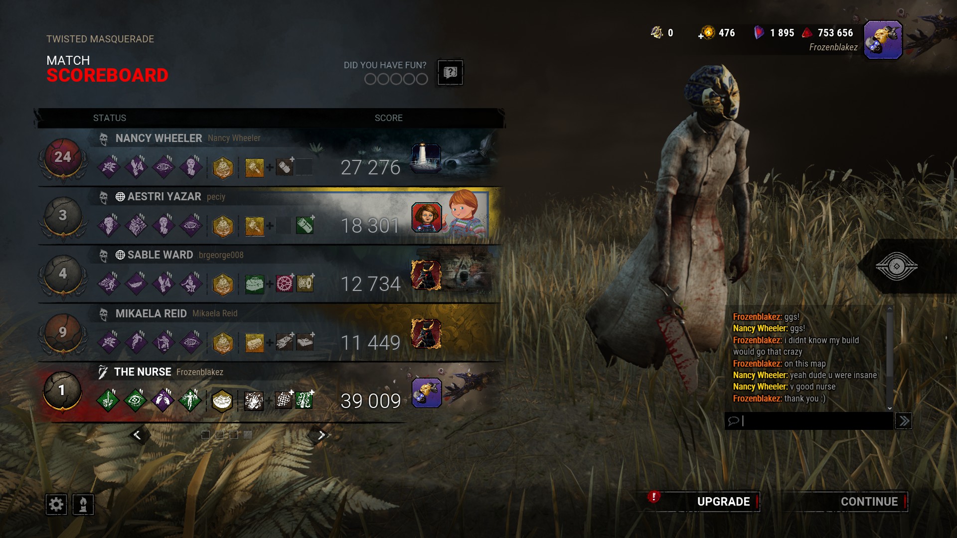 I dont really have a killer main in DBD I just usually go for whatever ones i need achievements on while my survivor mains are Steve and Yun-Jin.