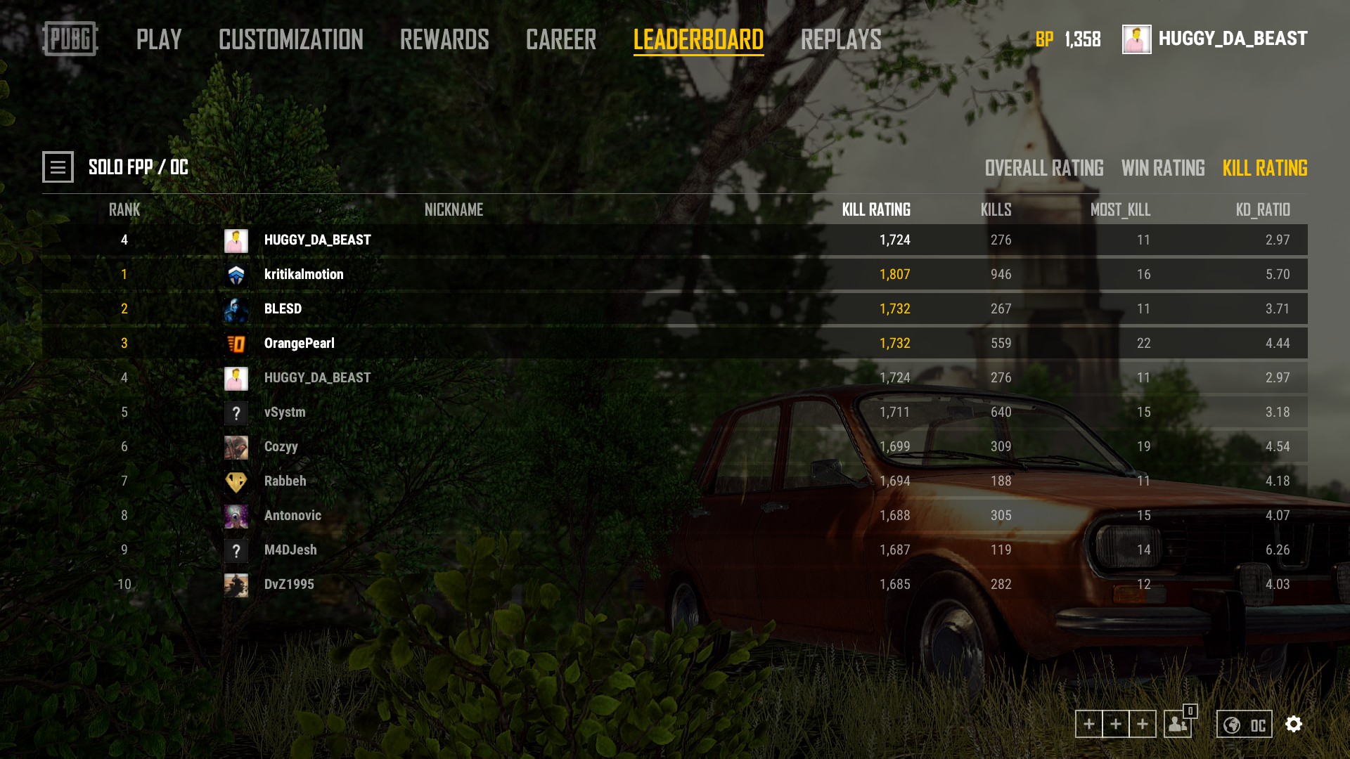 Top 10 for solo fpp kills AGAIN