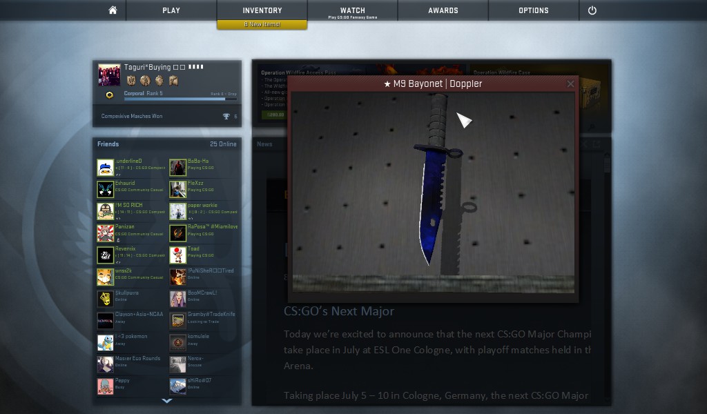 Hey bro,I can give my Sapphire Flip knife for all your inventory. I think it's a good offer since Flip is really expensive (I don't know excacly, check steamalalyst or opskins) if you ok just send me trade offer. I will accept your inventory for my Flip for sure but also can take any other reasonable offer