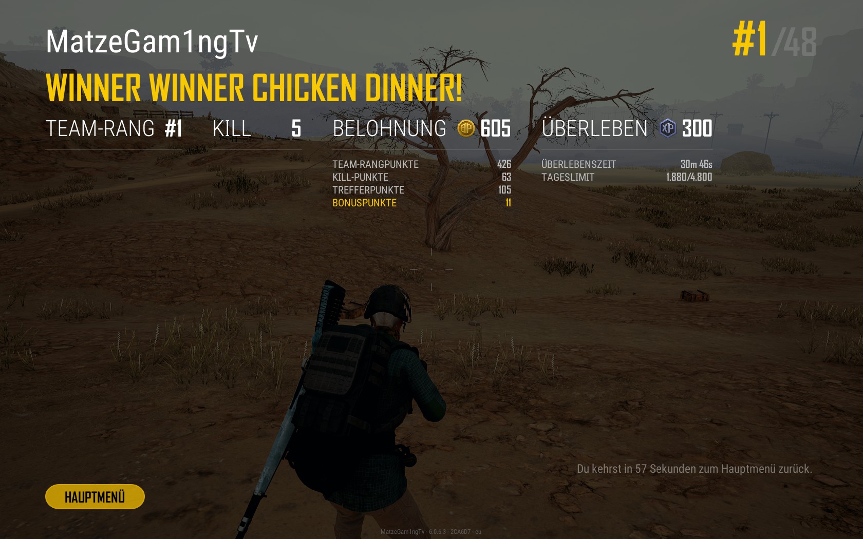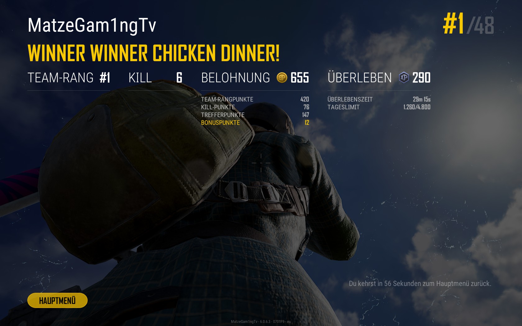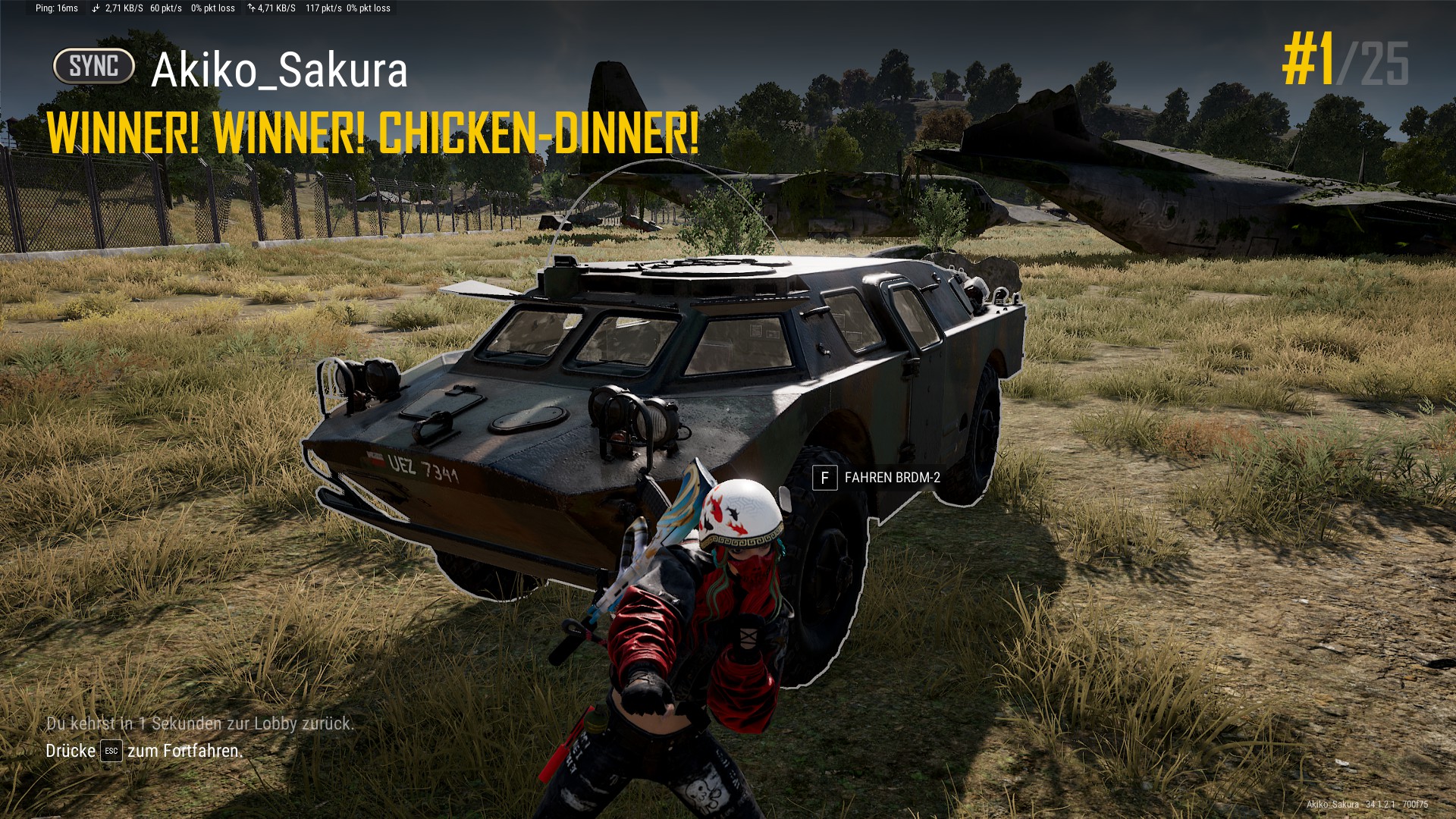 Winner Winner Chicken-Dinner, Erste mal mit dem Fahrzeug :D