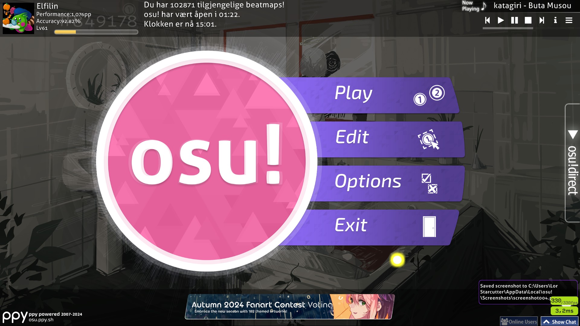 I'm a osu! player, I do focus on playing just for fun or Leaderboard farm in general