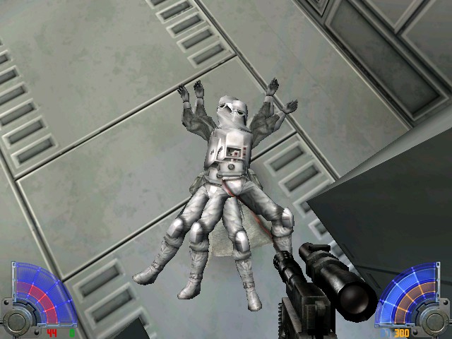 The game feels very amateurish, and the first levels are a frustrating slog. Make it a little further though, and you'll realize a very peculiar thing - the game feels like it was actually playtested. The ammo and health drops are placed very purposefully. And since the mouse just doesn't work for aiming, the game feels balanced around slowly turning the camera with arrow keys and shooting while either moving in one direction or just standing.