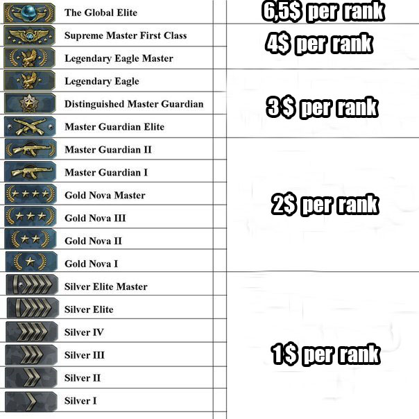 from silver 4 :csgogun: silver 5 = 1$
