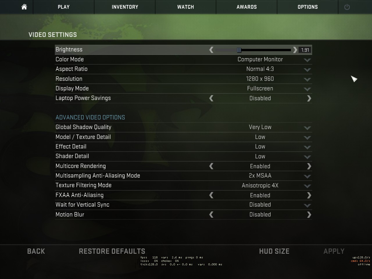 Resolution: 4:3 - 1280x960 - 240Hz - stretched