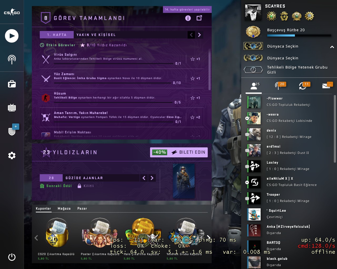 startup commands: -freq 165 -tickrate 128 -high -lv